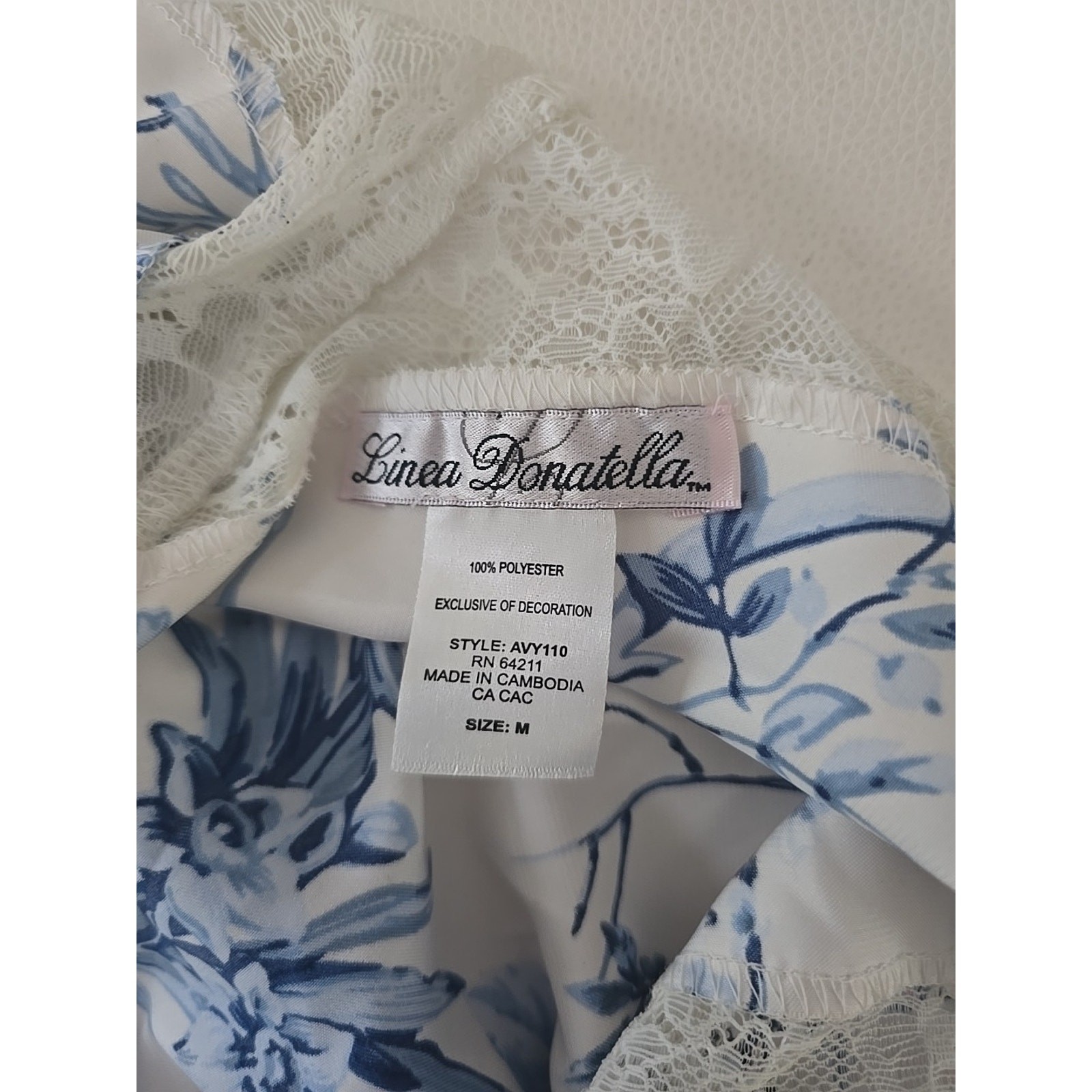 как выглядит Linea Donatella Elegant White Lace Trim Nightgown Womens Medium Lingerie Nightie фото