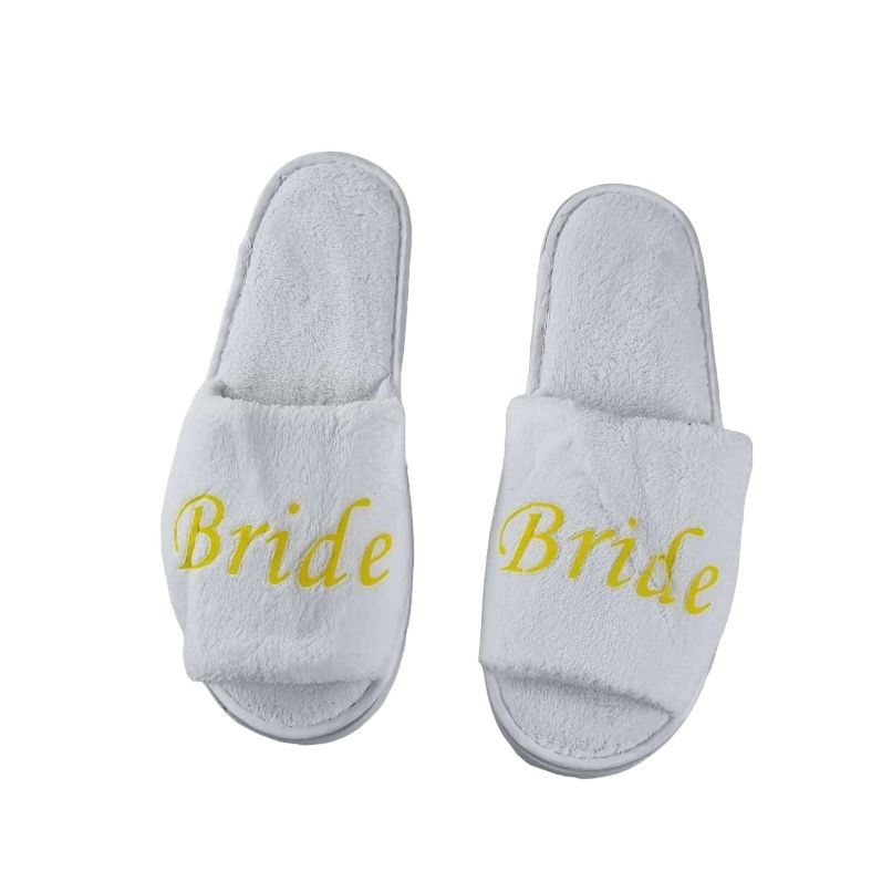 Bridal Slippers Wedding White Bright Yellow Gold - Bride To Be