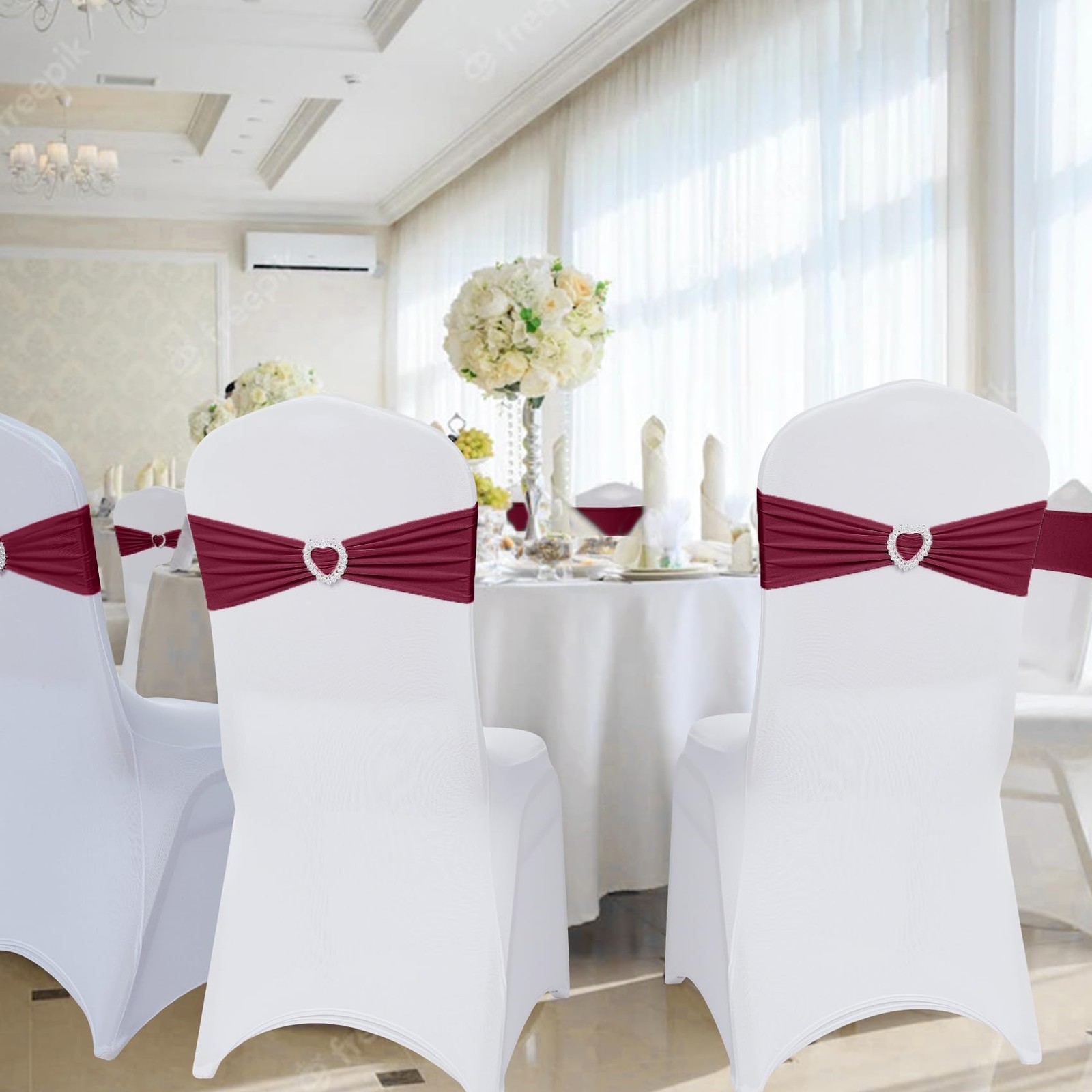 Pack of 30 Spandex Chair Sashes Bows Stretch Chair Cover Band with Buckle Sli...