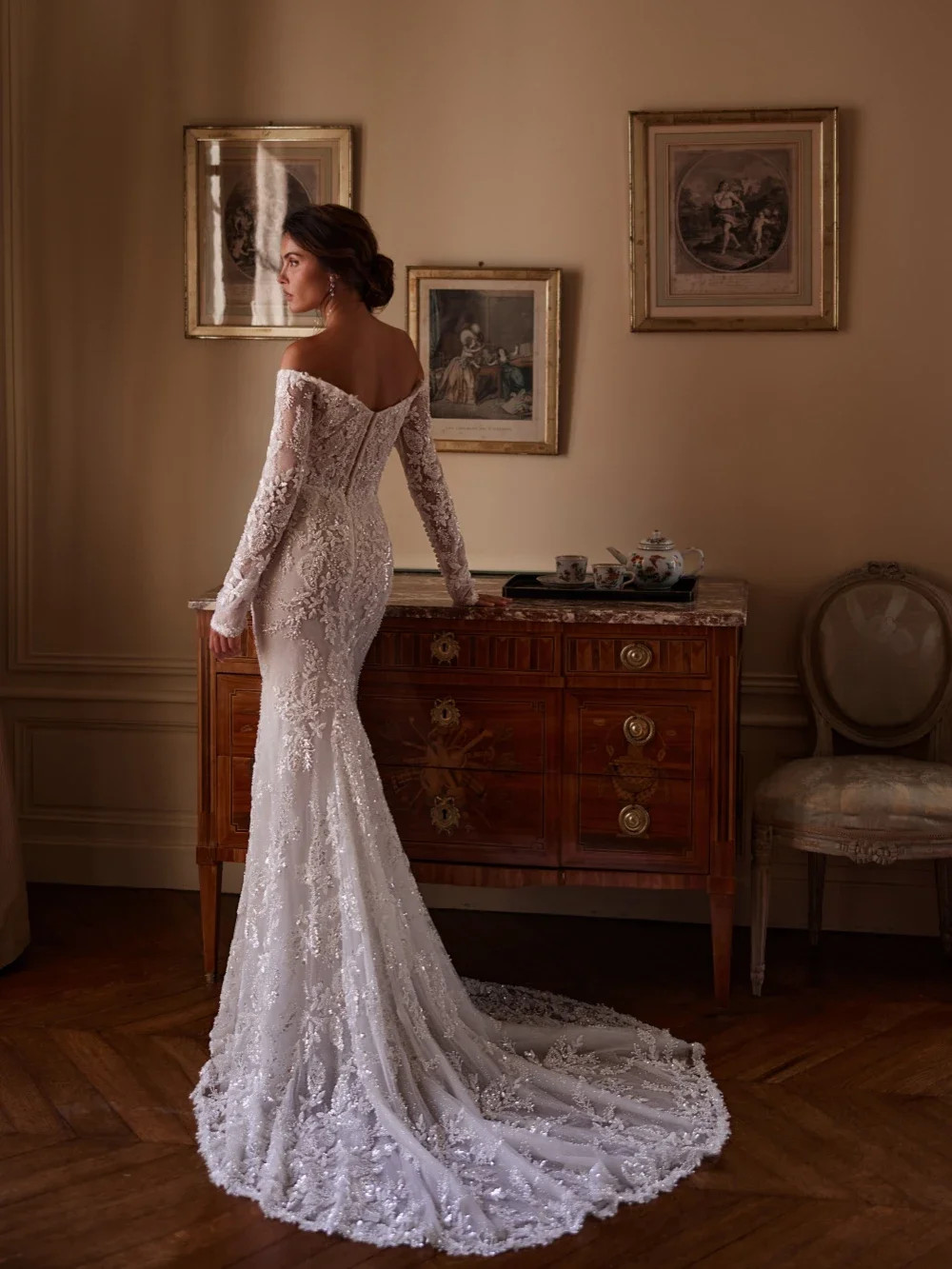 Lace Mermaid Long Wedding Dress Graceful Off Shoulder Bridal Gown For Bride
