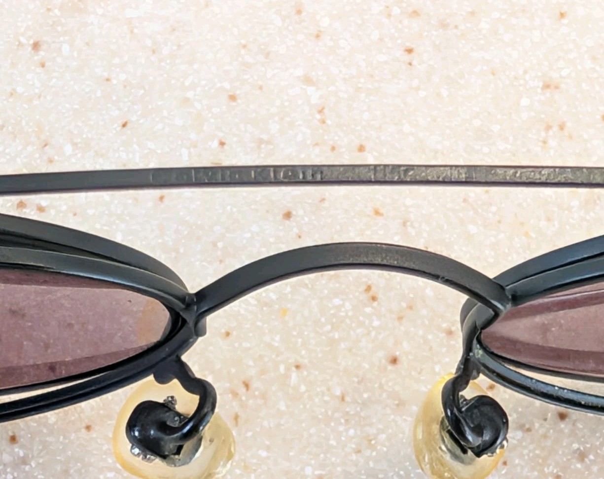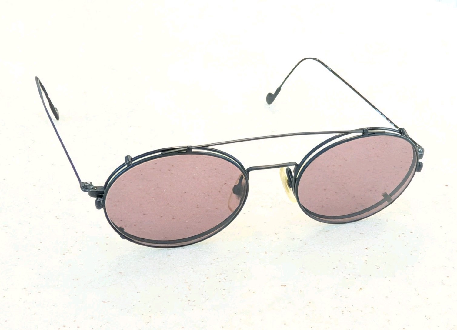 Vintage CALVIN KLEIN CK 115 Black Oval Eyeglass Frame w/ Sun Clip-On 49mm Japan