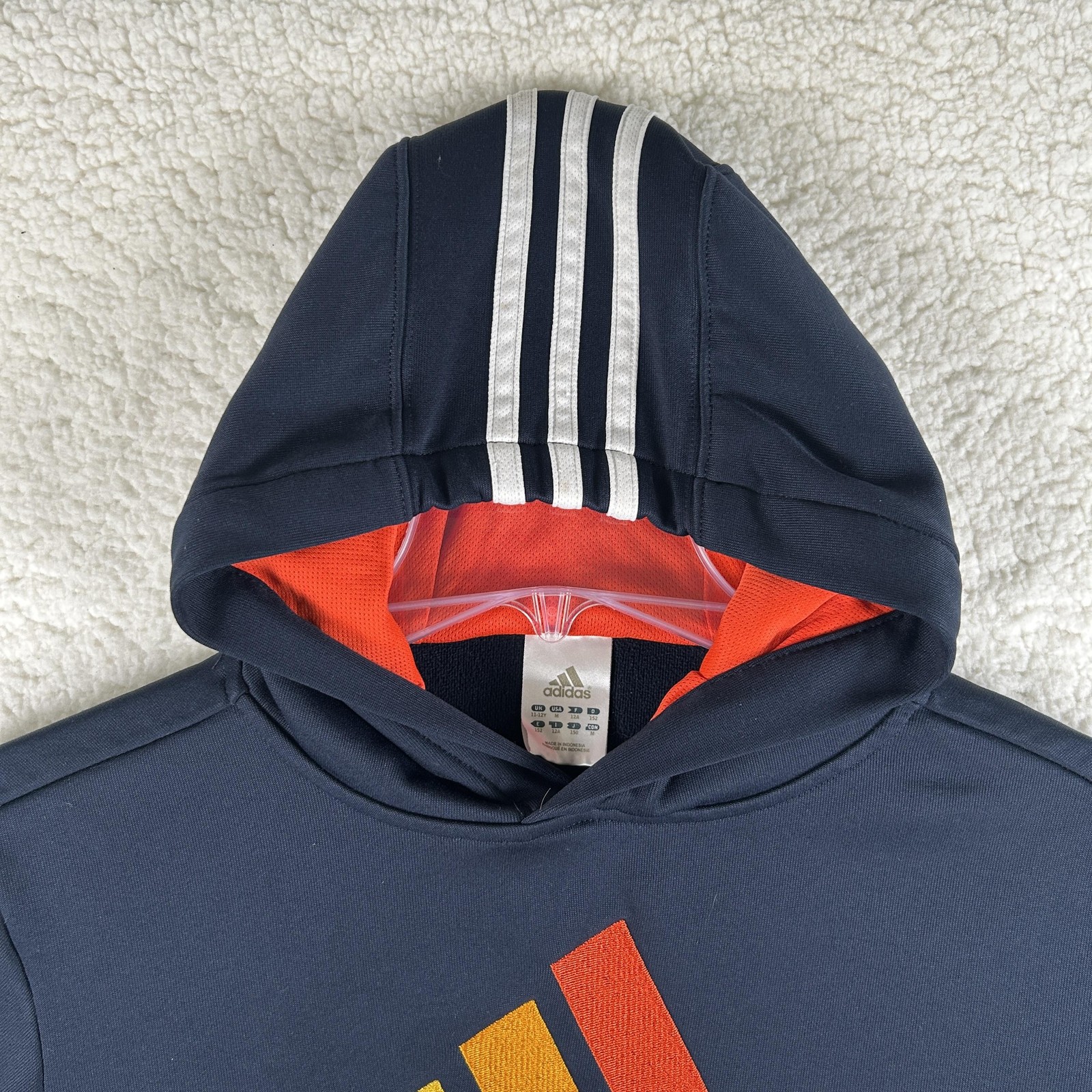 как выглядит Adidas Hoodie Kids Medium Blue Fleece Pullover Big Logo 3-Stripes W60910 фото
