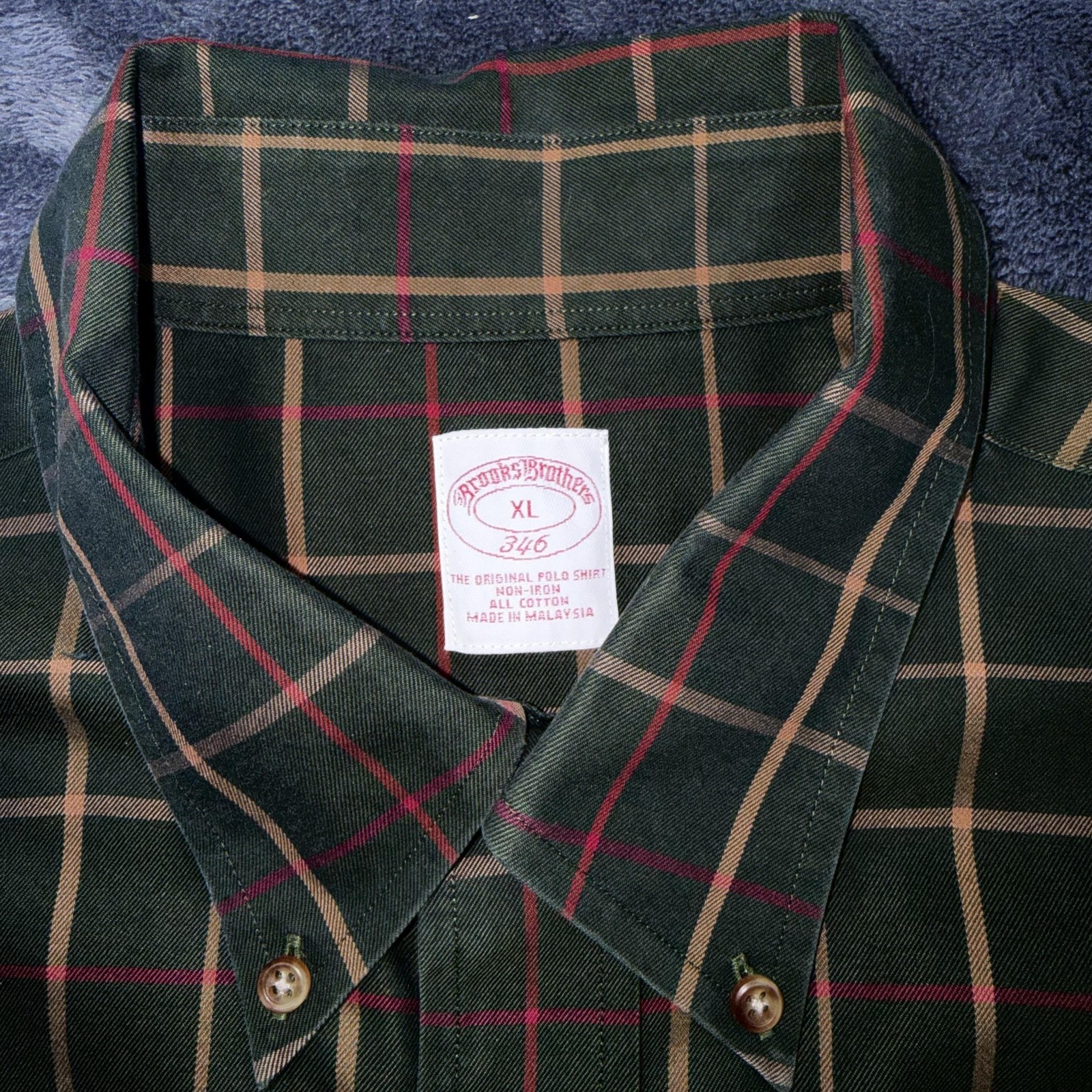 как выглядит Brooks Brothers Shirt Mens XL Green Plaid Non Iron Button Down Long Sleeve фото