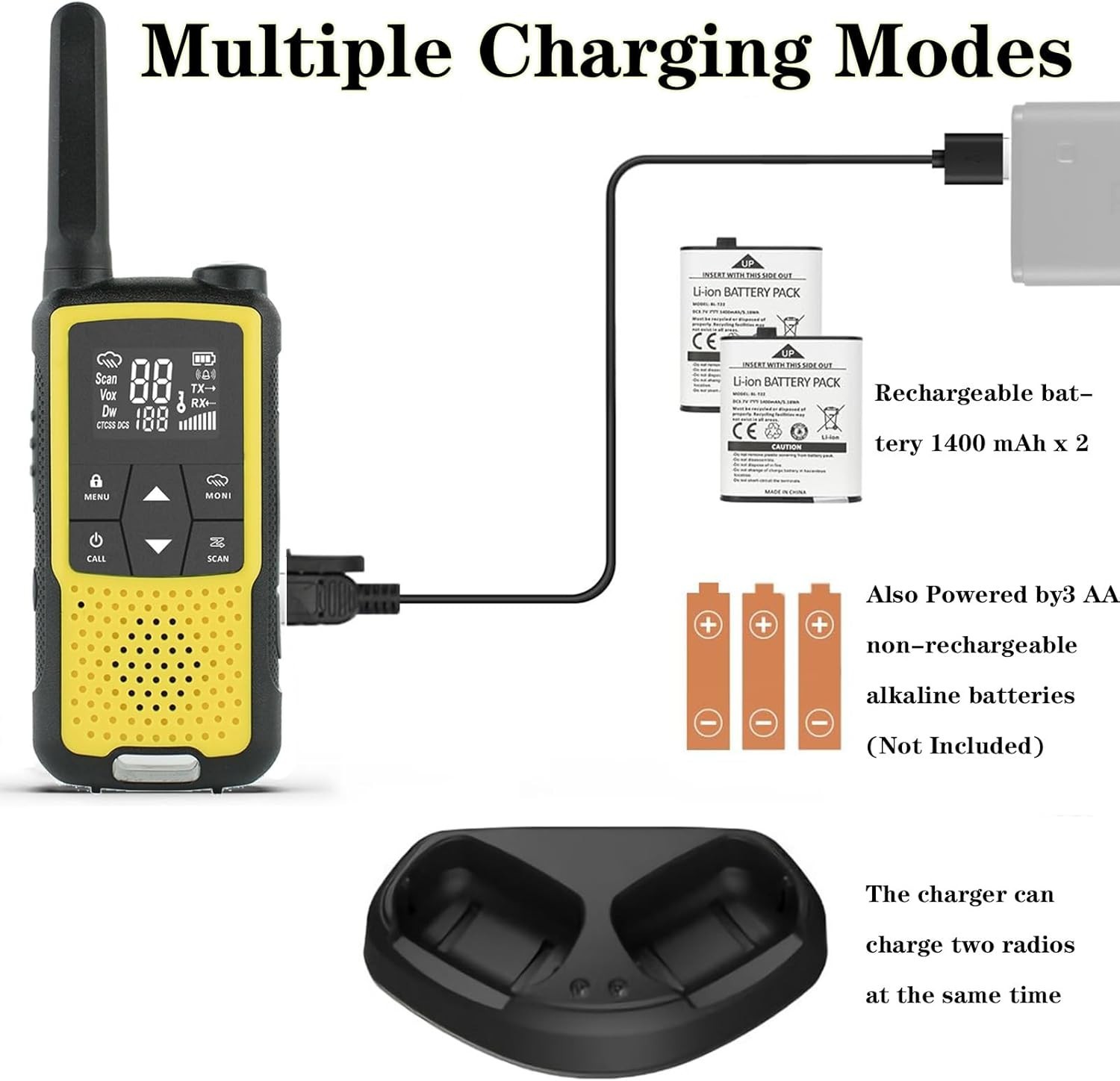 2 PACK Long Range Walkie Talkie 100 Mile Two Way Radio Charge Headset Waterproof