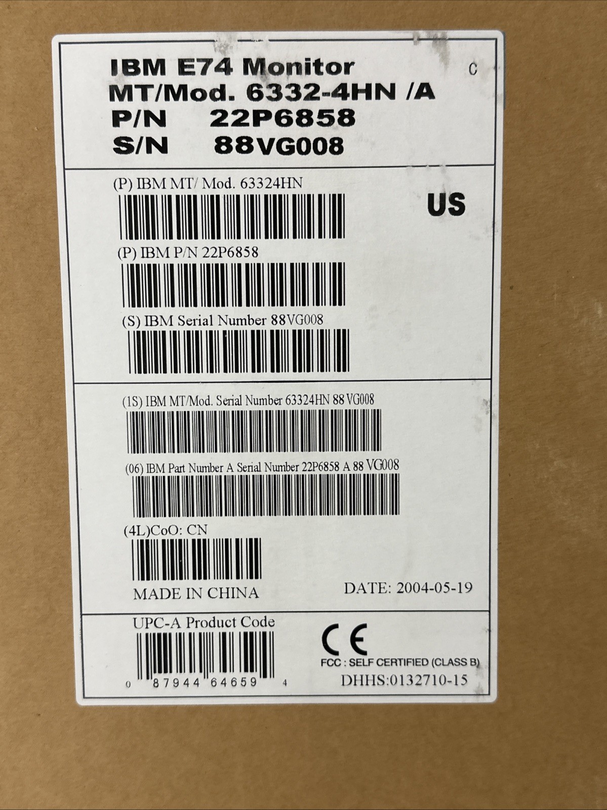 как выглядит IBM 17 Colored Monitor 6332-4HN/A 100-240V NIB фото