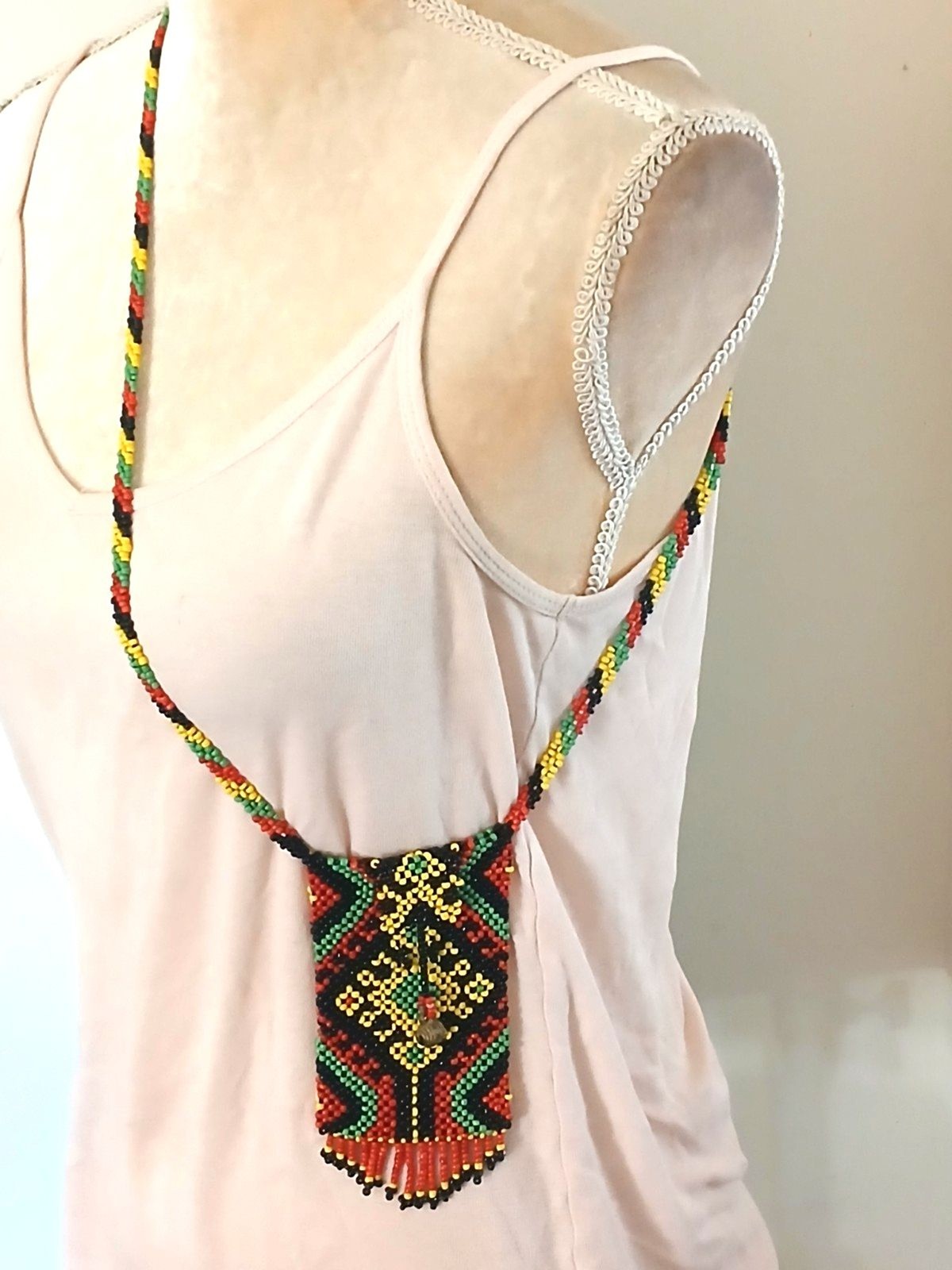 Handmade Colorful Beaded Pouch Mini Bag Tribal Medicine Bag 3X5 fringed