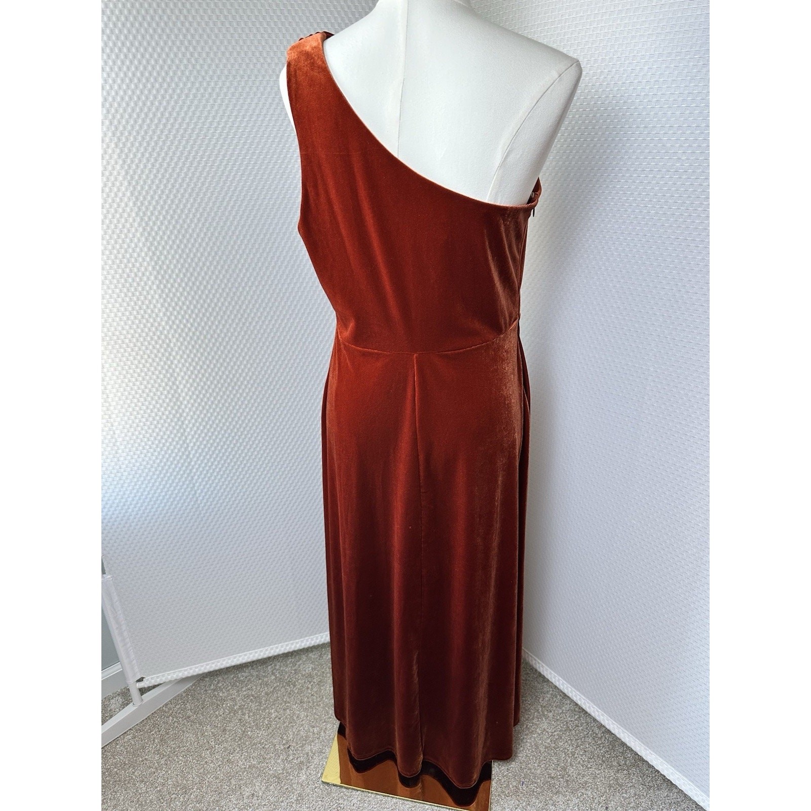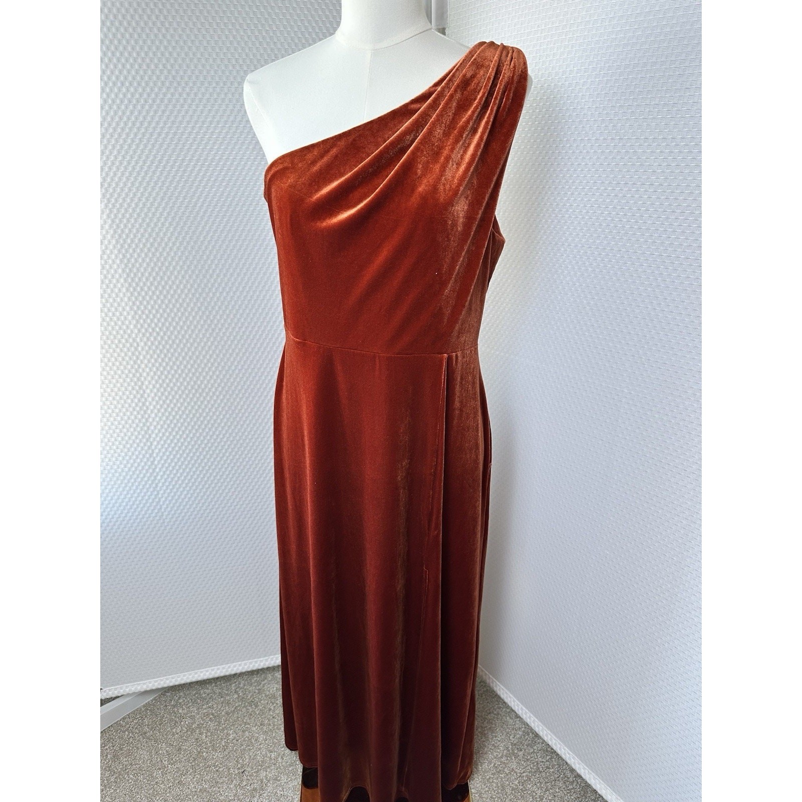 как выглядит Birdy Grey Orange Rust One Shoulder Velvet Dress Size Large Bridal фото