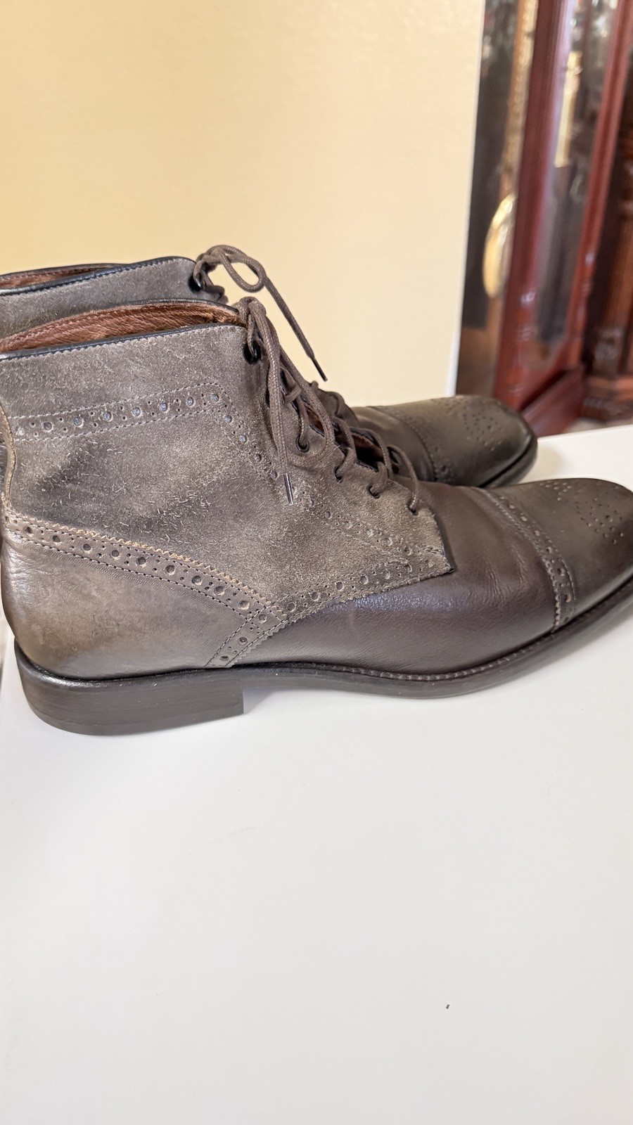 как выглядит Merrell Mens Leather Cap Toe Ankle Boots Brown Lace Up Air Cushion Size 12 фото