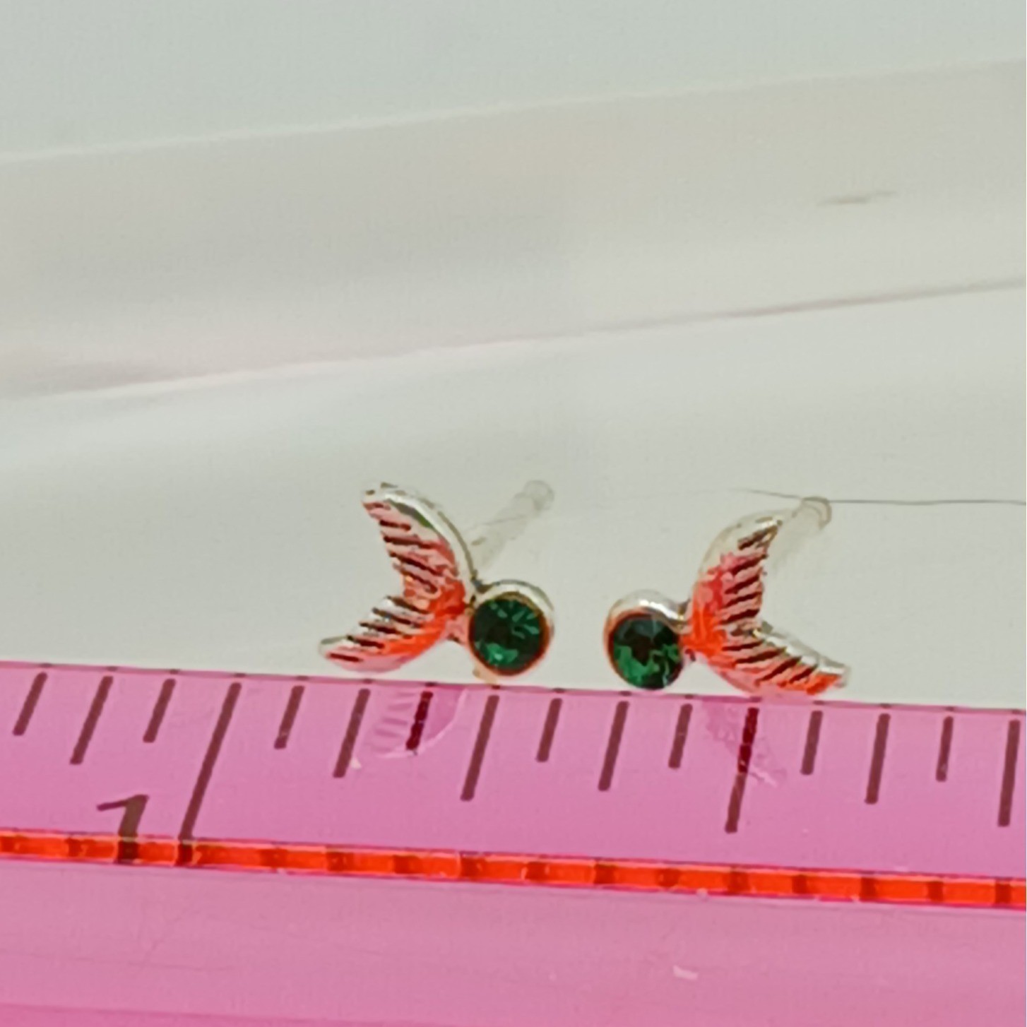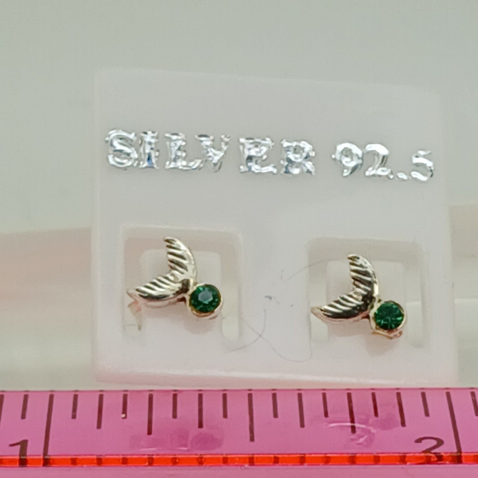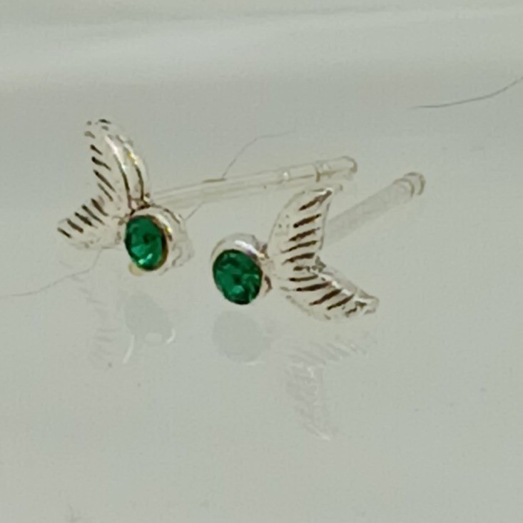 Sterling Silver 925 Mermaid Tail Stud Earrings Green Crystal Nautical Jewelry