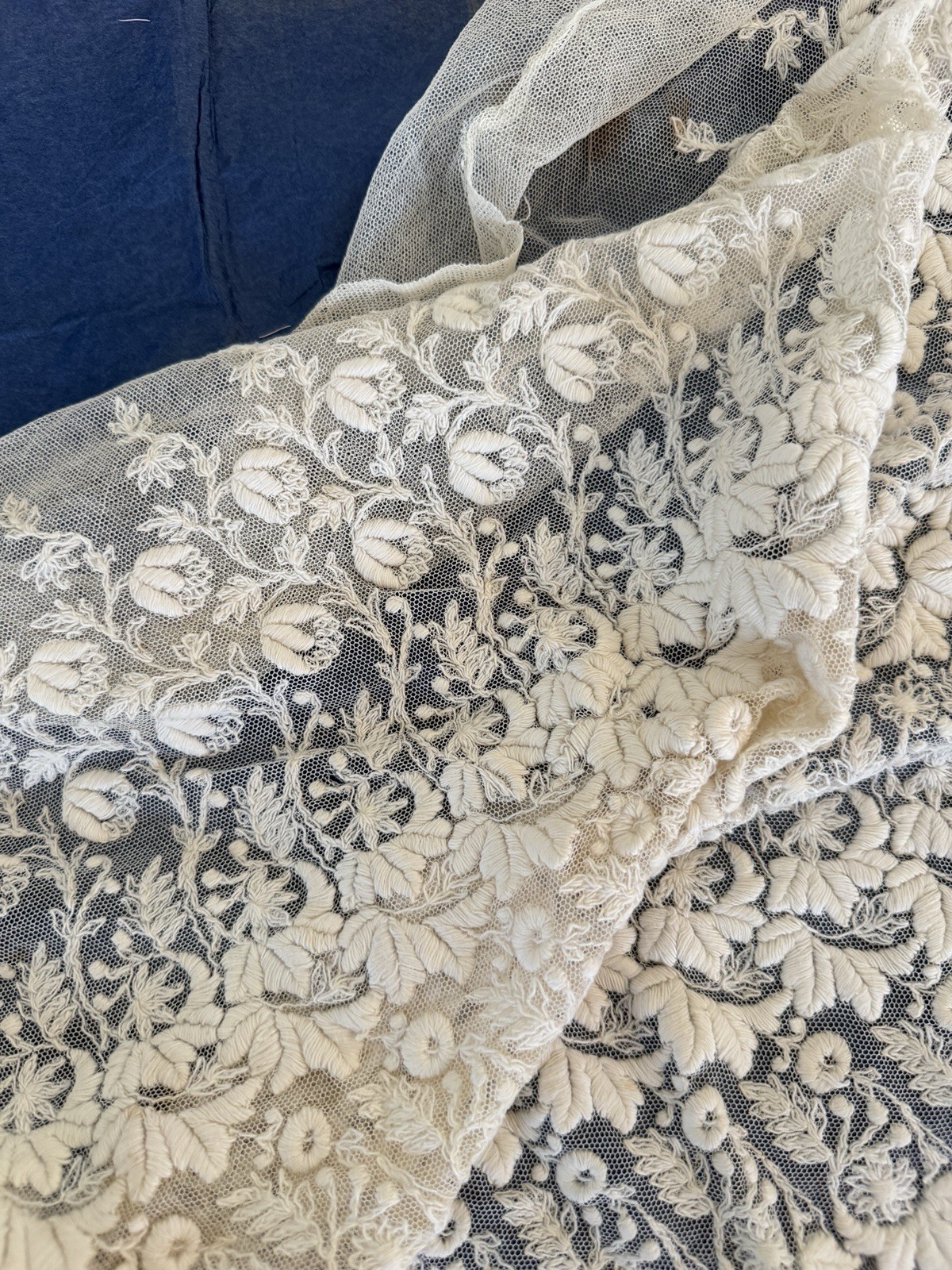 как выглядит EDWARDIAN ERA MACHINE EMBROIDERED LACE DRESS FLOUNCE фото