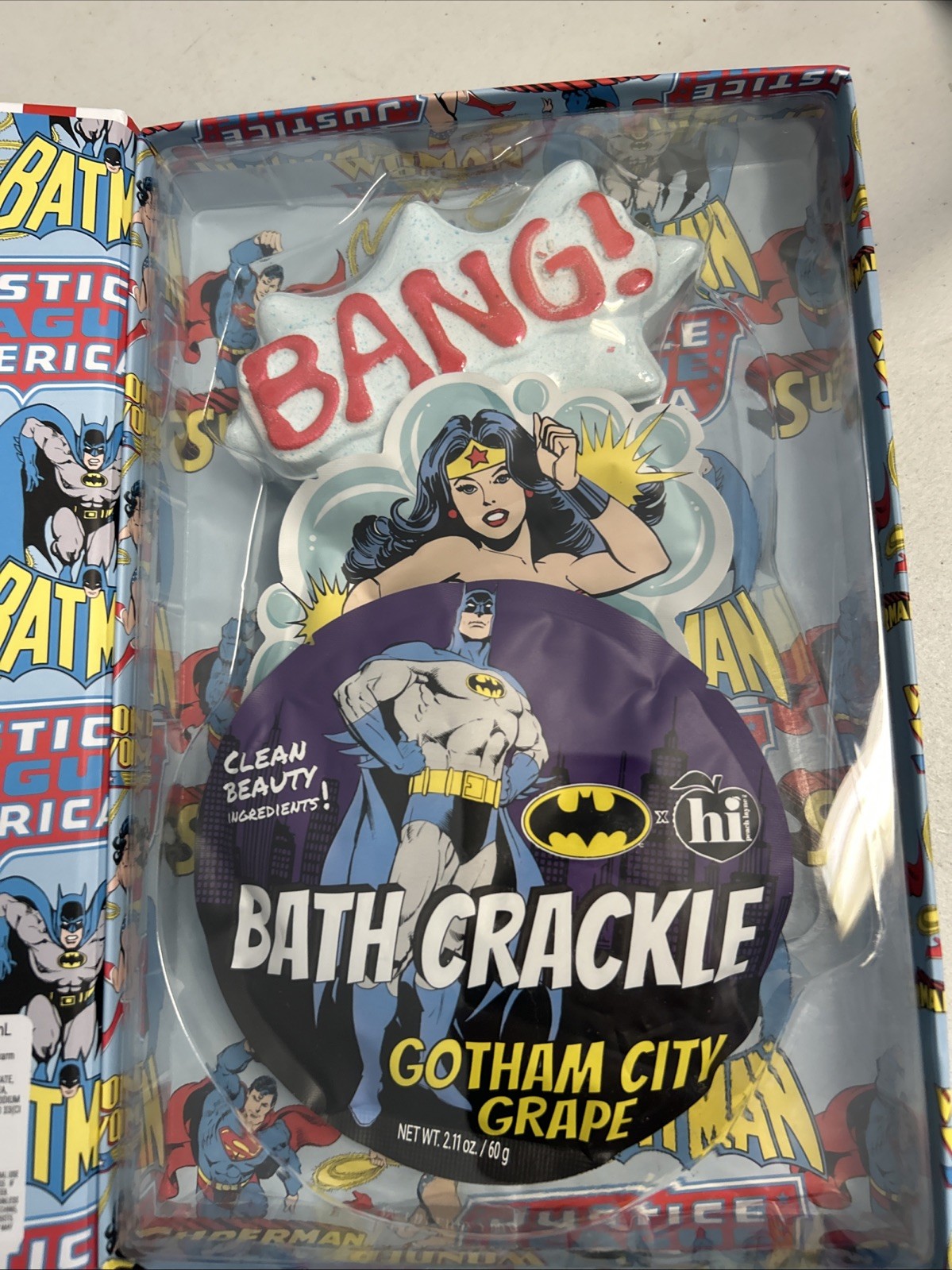 Hi Justice League America Bath Bomb, Bubble Bath, Bath Crackle Set New. C14.