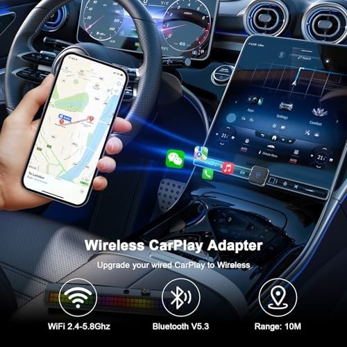 Wireless CarPlay Adapter for iPhone - Upgrade Wired to Wireless, Mini USB, Plug-