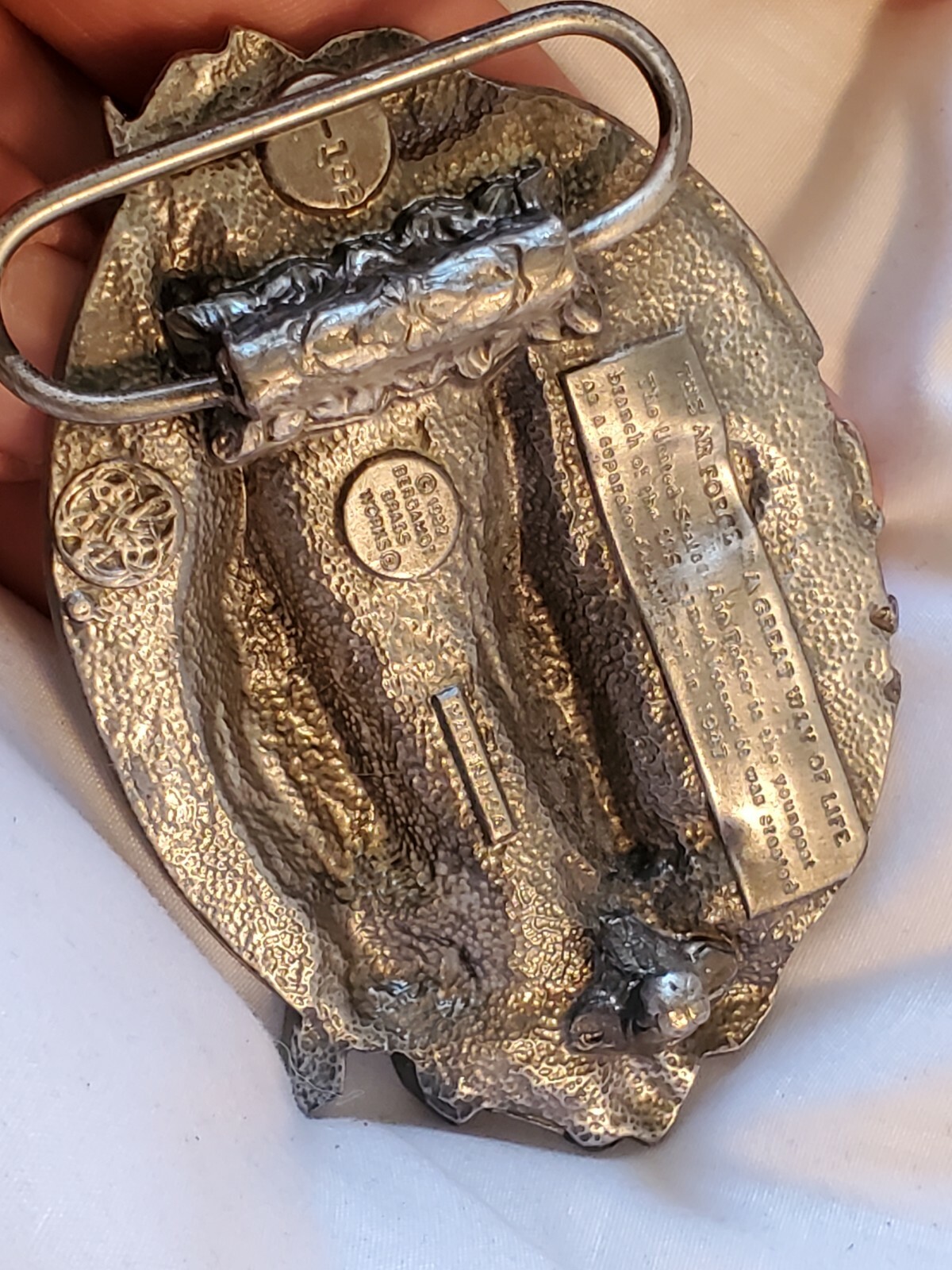 Vintage Blue Bergamot Belt Buckle US Air Force Brass Works 1982 USA Made J132 21