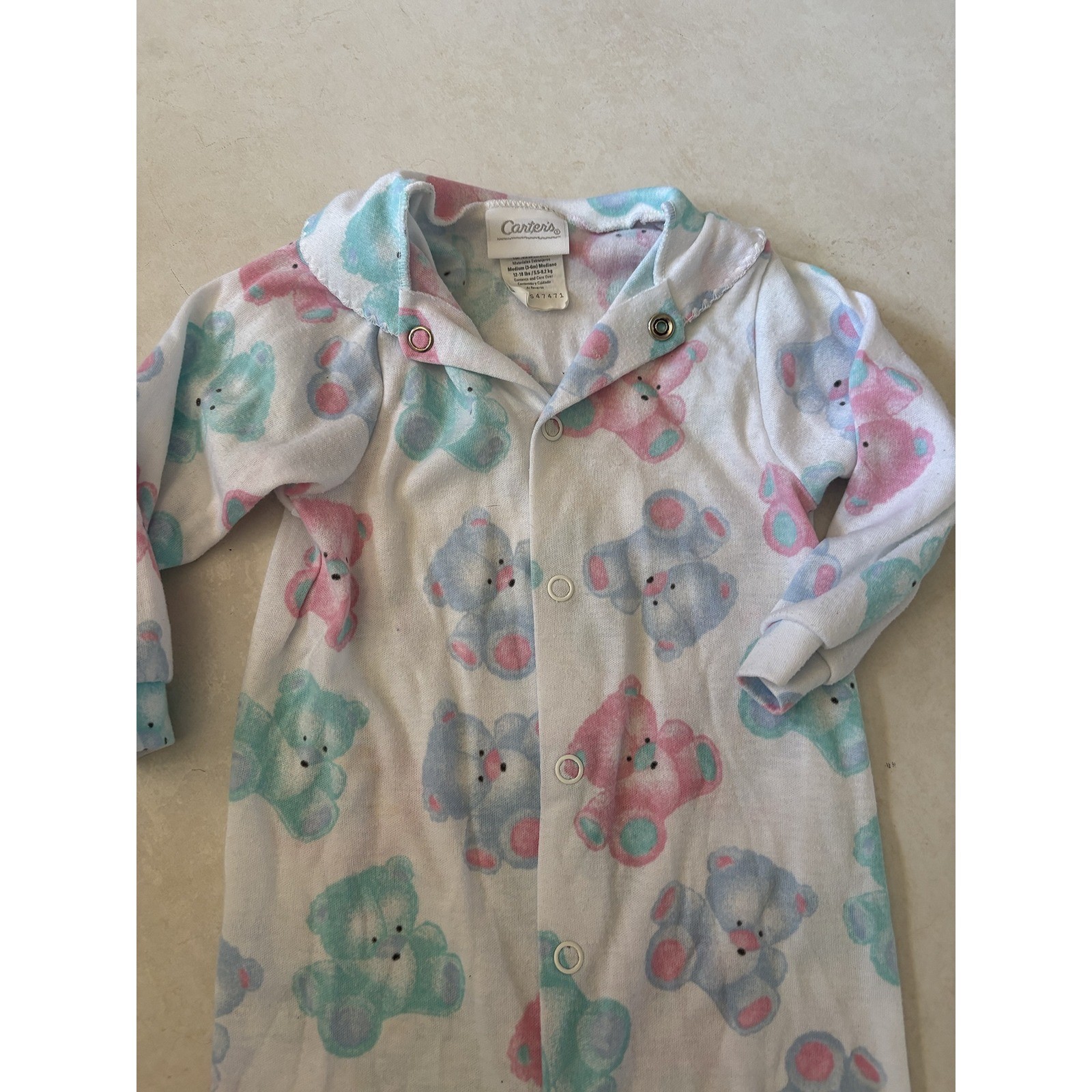Vintage Carters Baby Sleeper Pastel Teddy Bear Snap Front Footed Pajamas 3-6M
