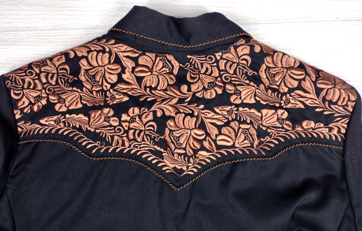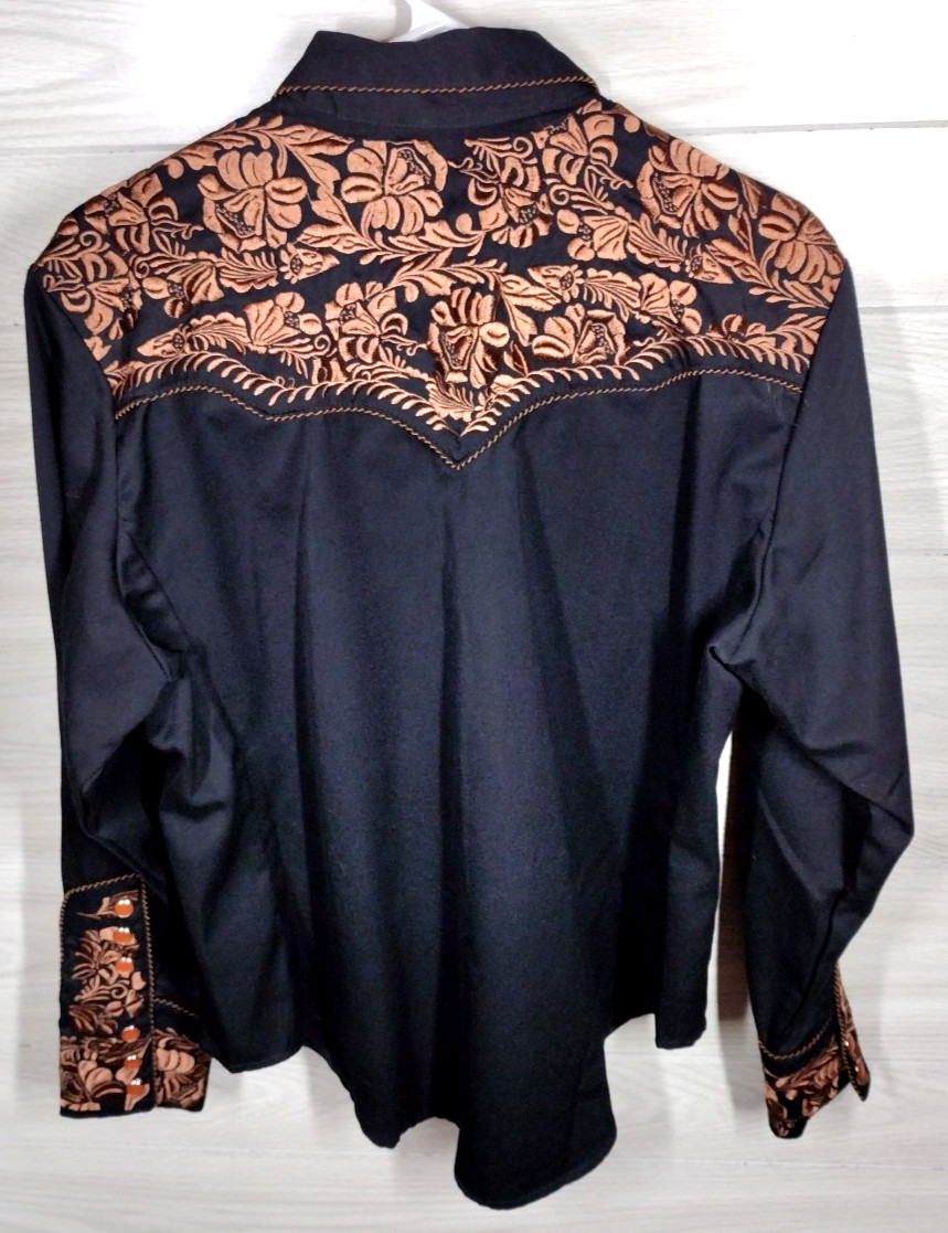 как выглядит Scully Western Embroidered Pearl Snap Gunfighter Shirt, Mens Size Large, Black фото