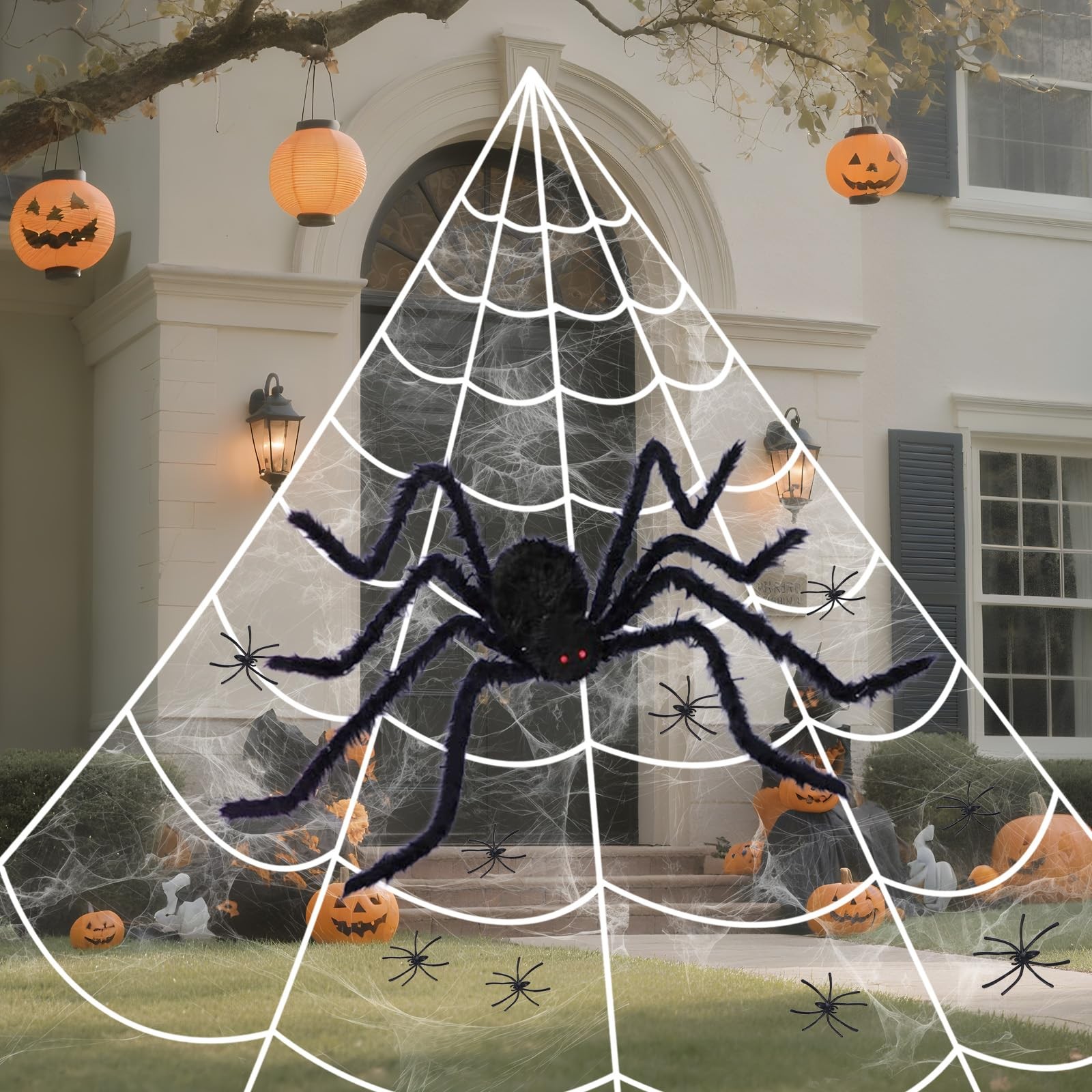 16.4 X 15.8Ft Giant Spider Web Halloween Decorations with 250 LED Lights, Hal...
