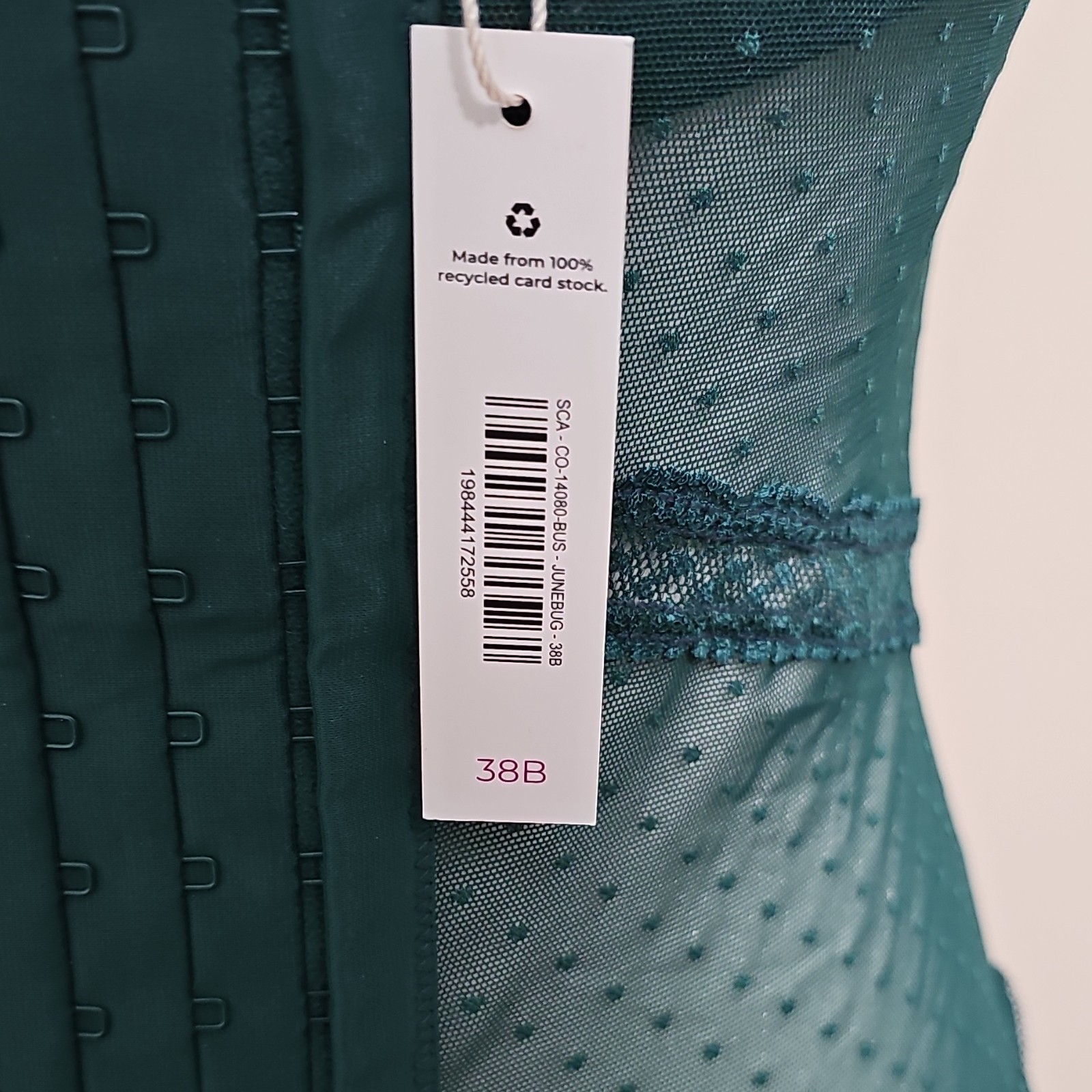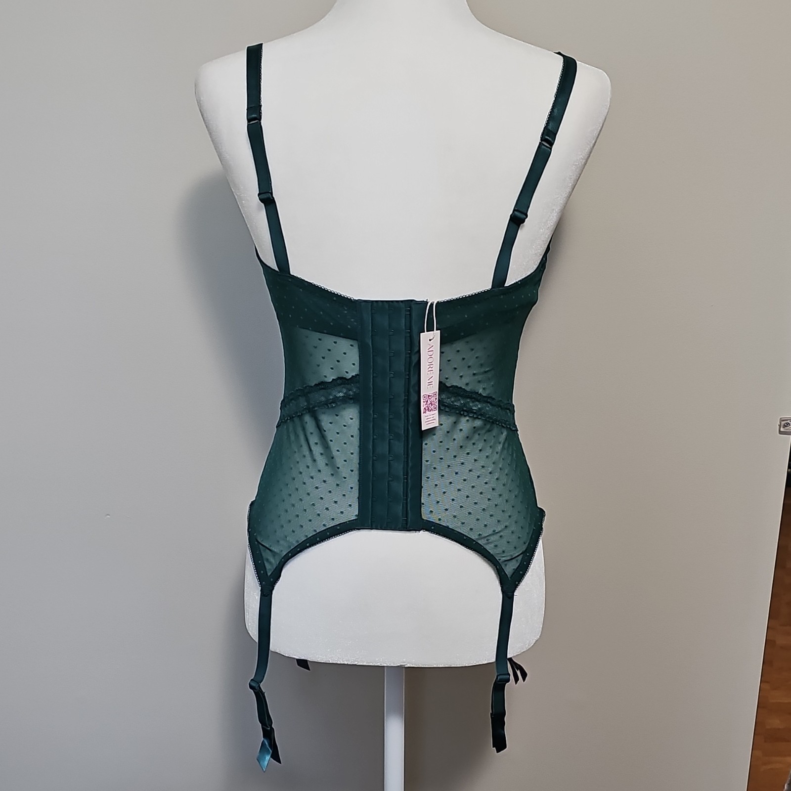 Adore Me Lace Mesh Bustier Garter Straps Floral Green 38B