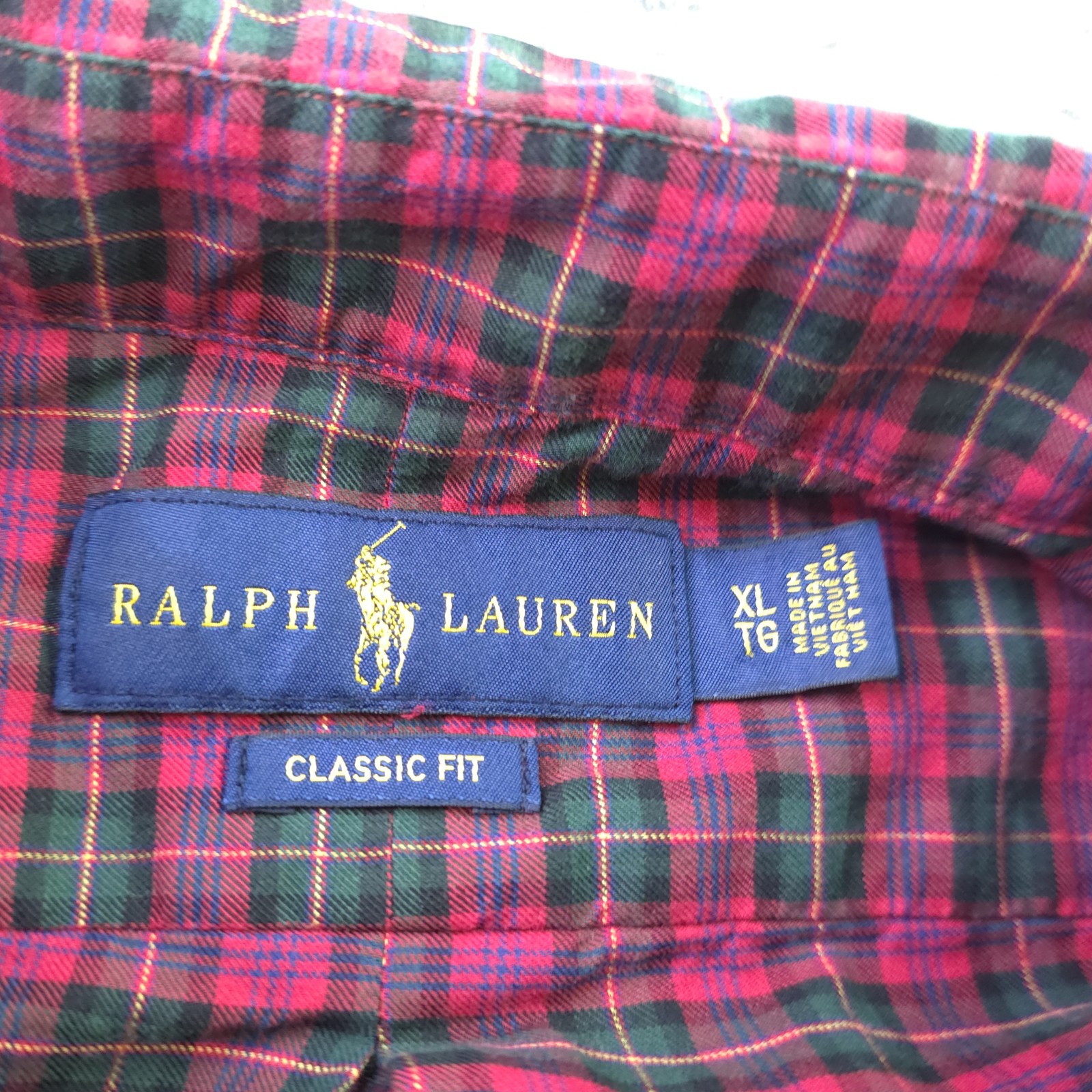 Ralph Lauren Shirt XL Custom Fit Red Green Check Long Sleeve Button Down Pony