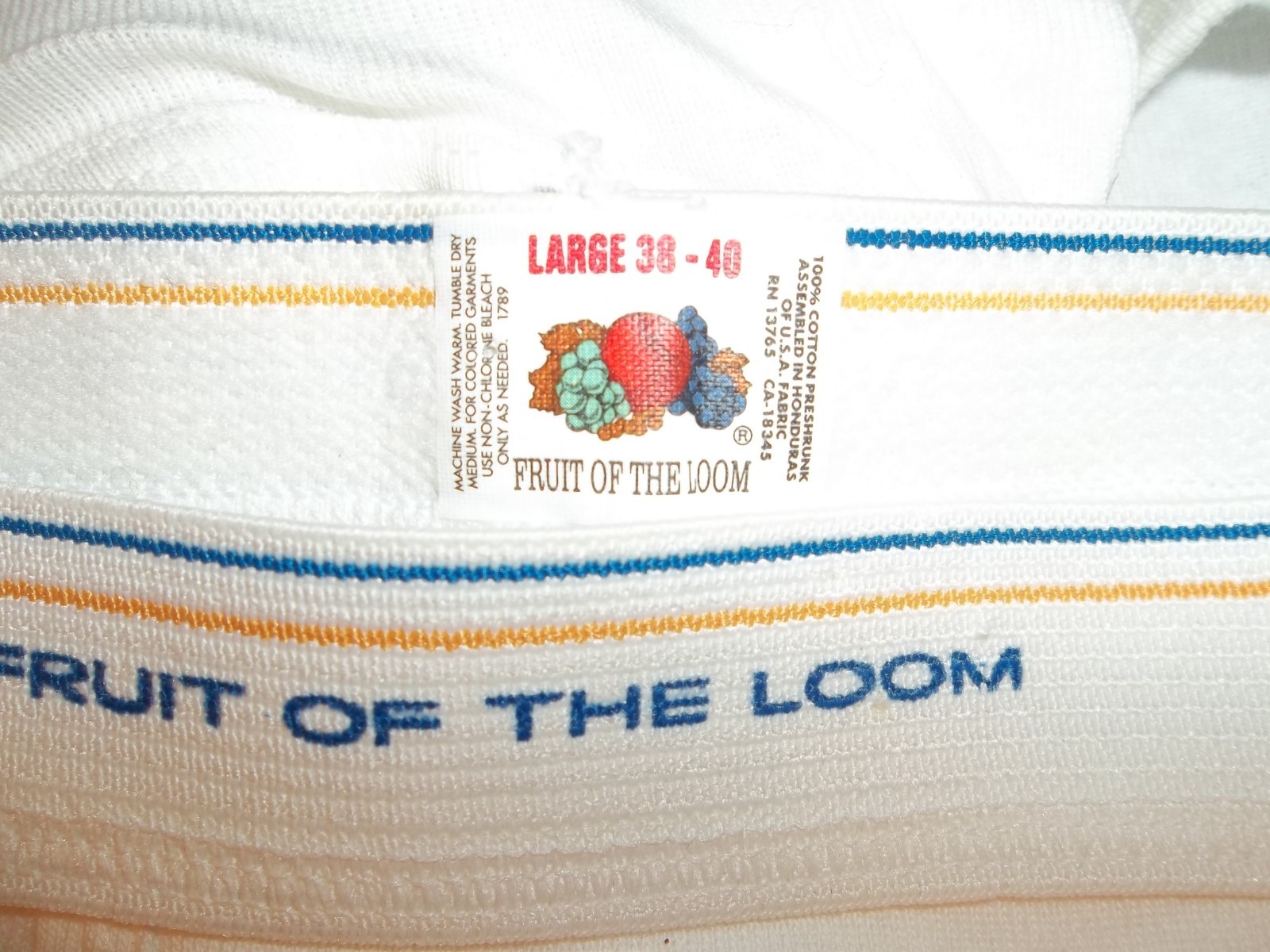 Vtg Unworn 3 PAIRS FRUIT OF THE LOOM ALL COTTON BRIEFS UNDERWEAR Large 38-40