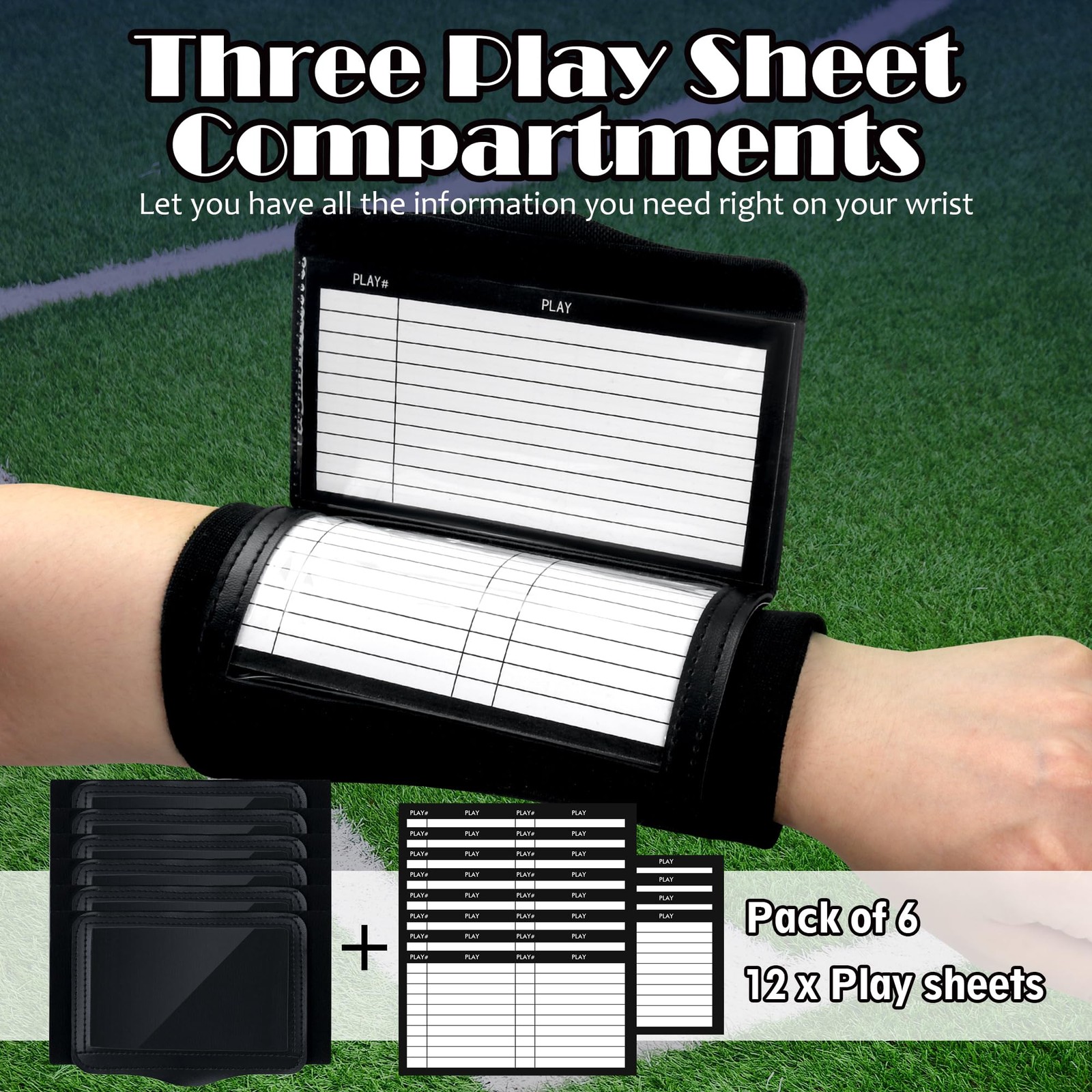 6 Pack Adult Football Wristbands, Quarterback Playbook Wristband with 3 Compa...