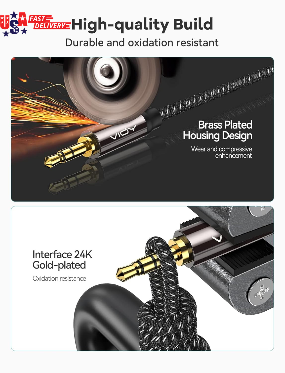 Aux Cable 20 Ft , Copper Shell, Hi-Fi Sound 3.5 Mm Male to Male Braided Auxil