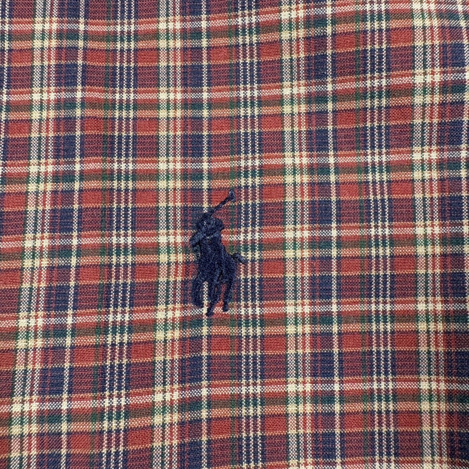 Ralph Lauren Shirt Mens Medium Orange Blue Plaid Classic Fit Logo Button Down
