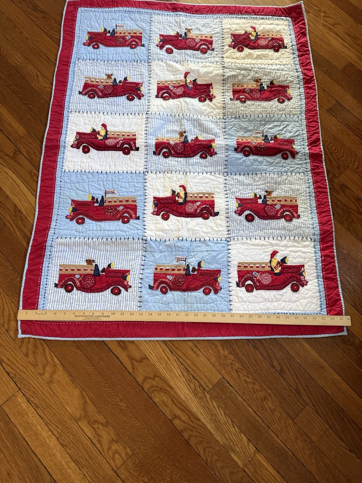 Vintage Pottery Barn Kids Red Fire Truck Engine Quilt Crib Toddler 36 X 50 EUC