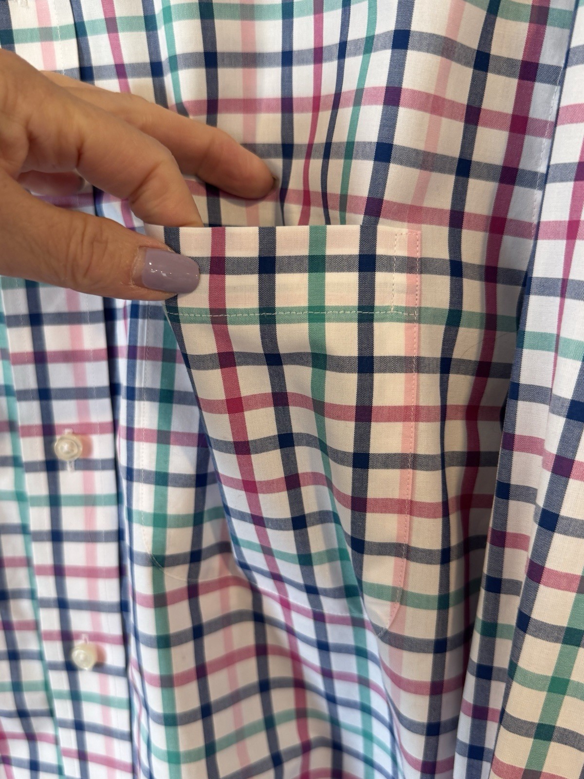 как выглядит Jos A Bank Travelers Collection Button Down Shirt Mens Large Blue Pink Check фото
