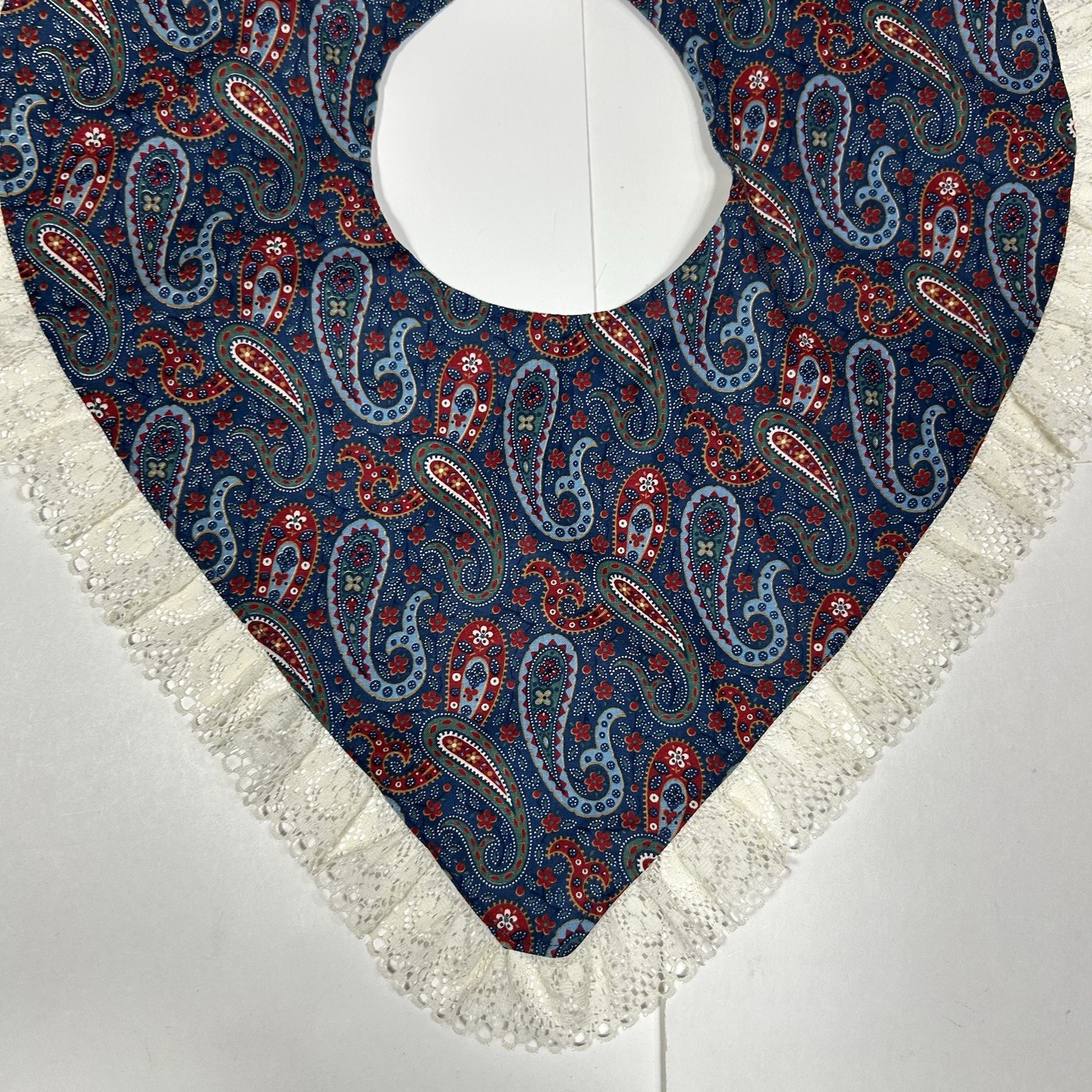 Vtg Women Handmade Collar Neck Bib Paisley Triangle Shape Lace Accent Cottagecor