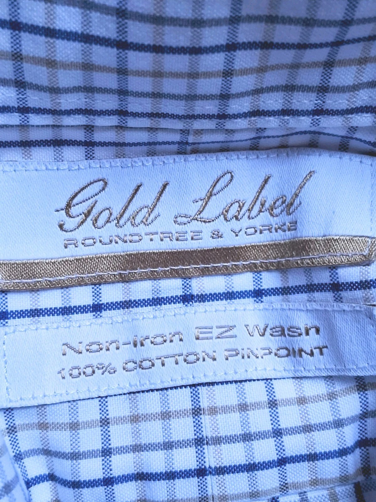 как выглядит Roundtree Yorke Gold Label Size 16.5 Check Button Up Shirt Non Iron EZ Wash фото