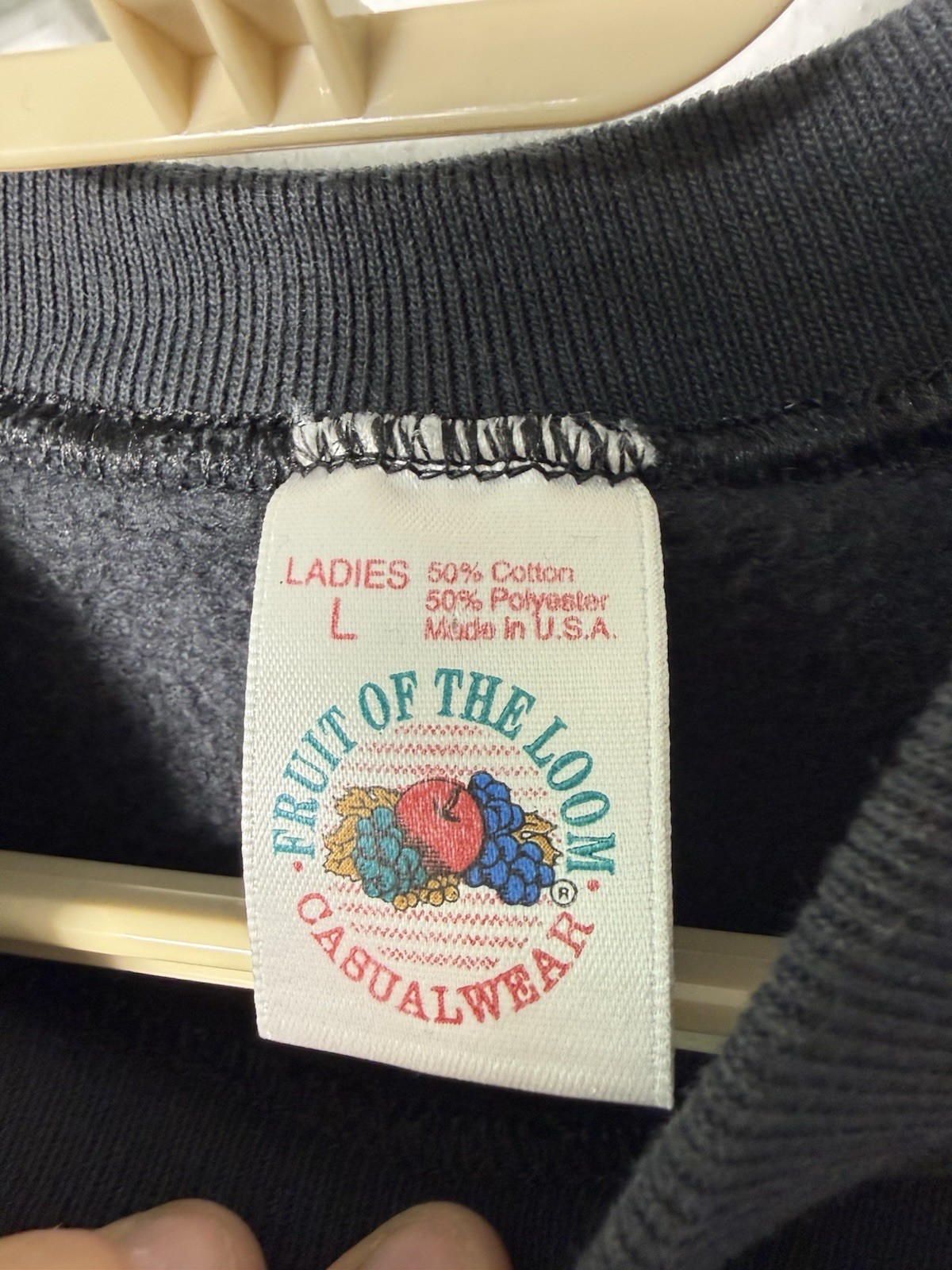 как выглядит VINTAGE USA Made Fruit Of The Loom Blank Sweatshirt Womens Large Black Crew Neck фото