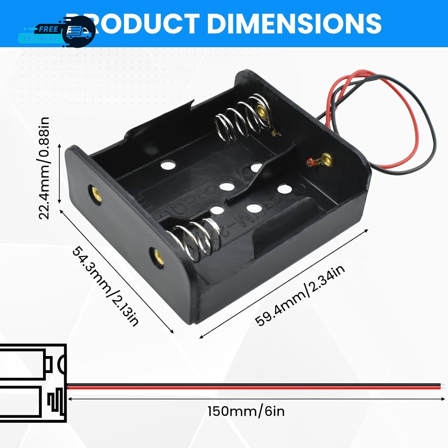 2-Pack 2X C Cell Battery Holder 3V C Size Battery Case Box with Wire Leads