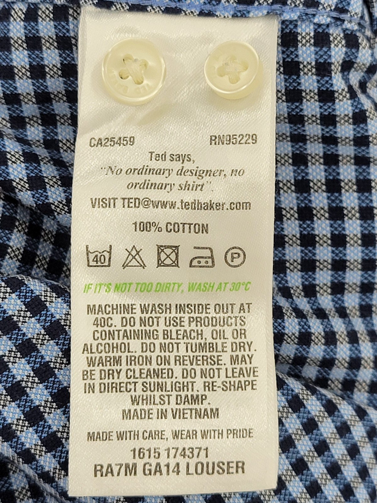 как выглядит Ted Baker Endurance Dress Shirt Mens 16 36/37 Blue Plaid Flip Cuff Button Up фото