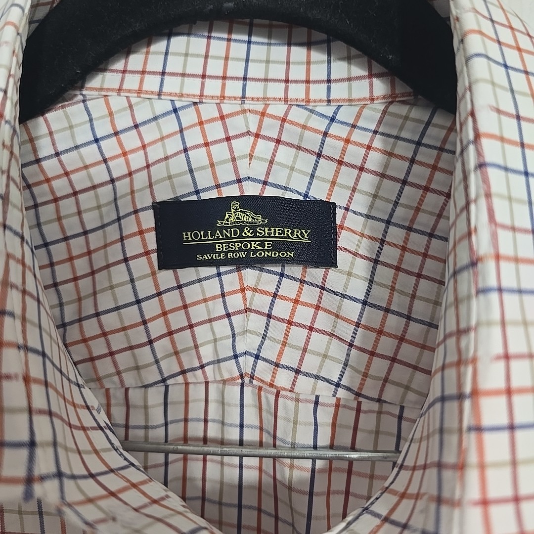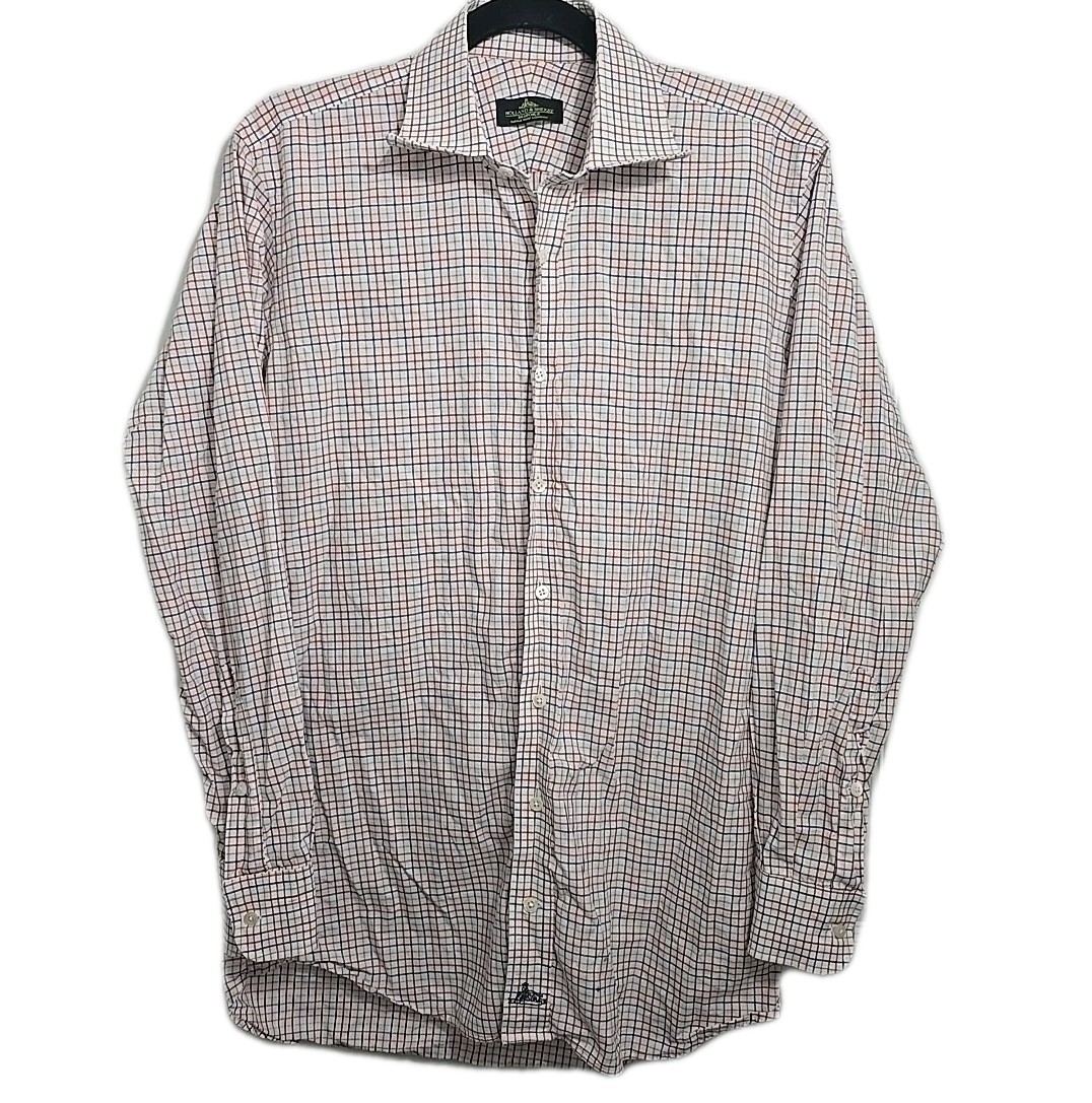 Holland Sherry Bespoke Savile Row London Check Button Up Shirt Size L 22 Ptp