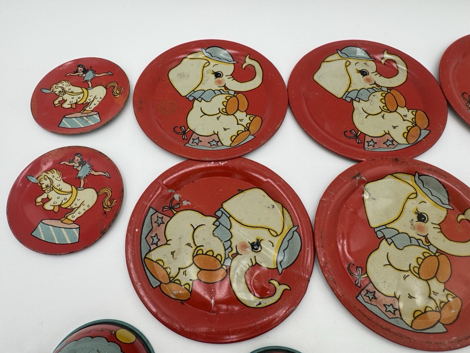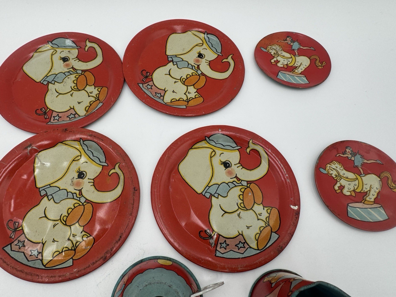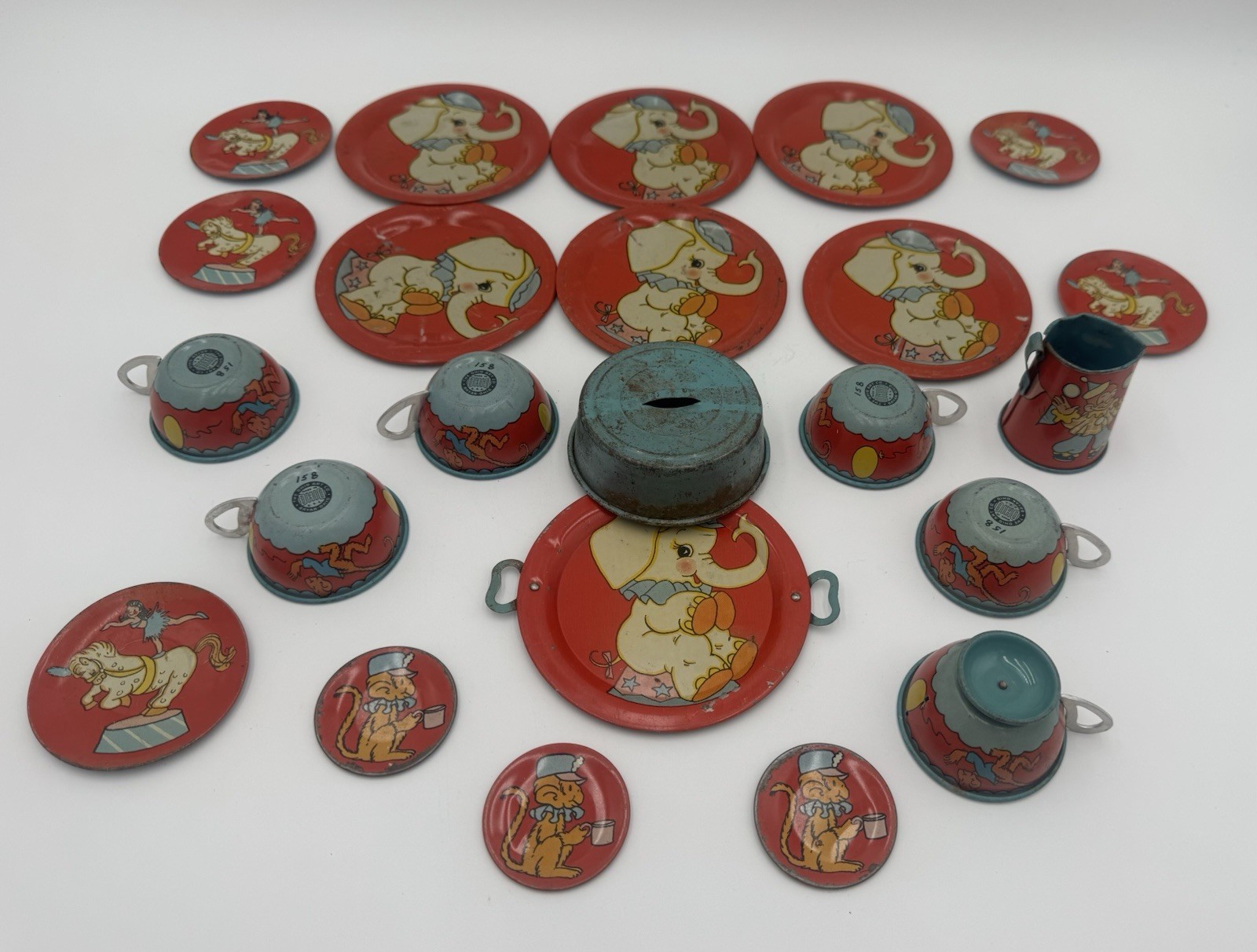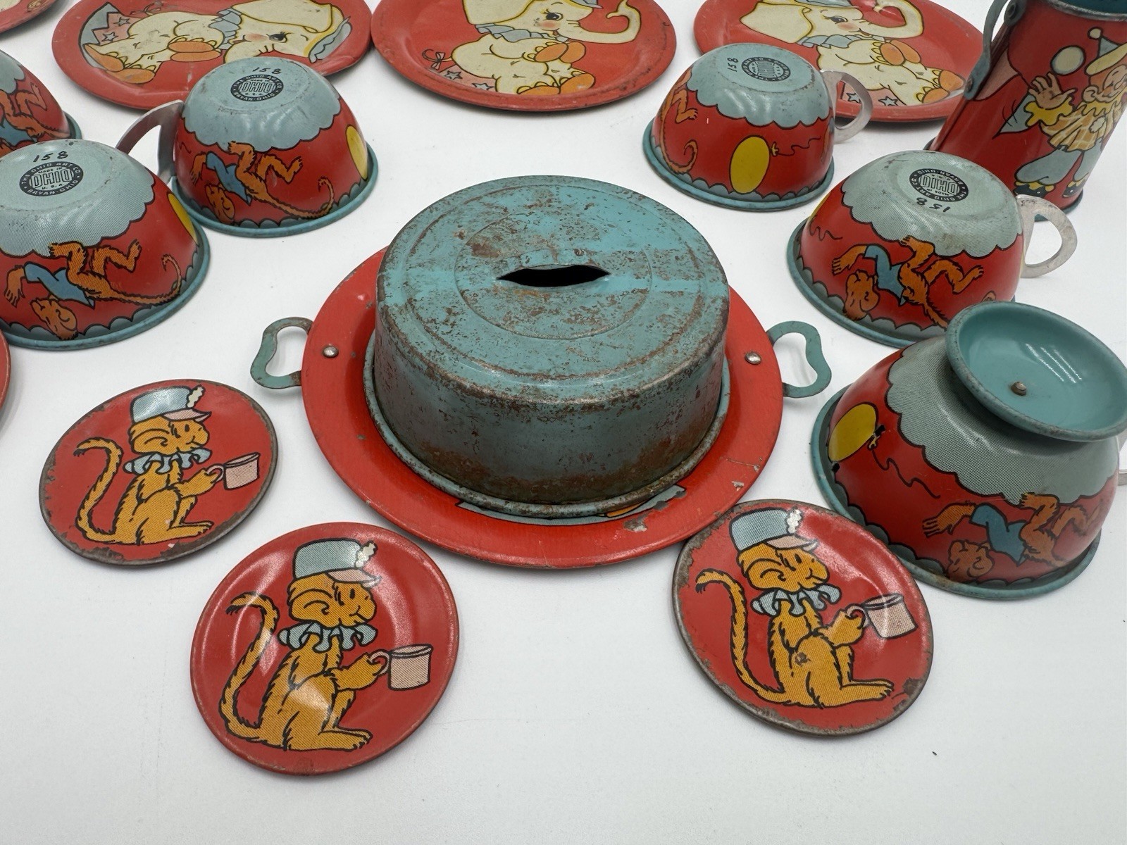 1948 Ohio Art 158 Circus Tin Toy Tea Set Vintage Collectable Antique Childs Toy