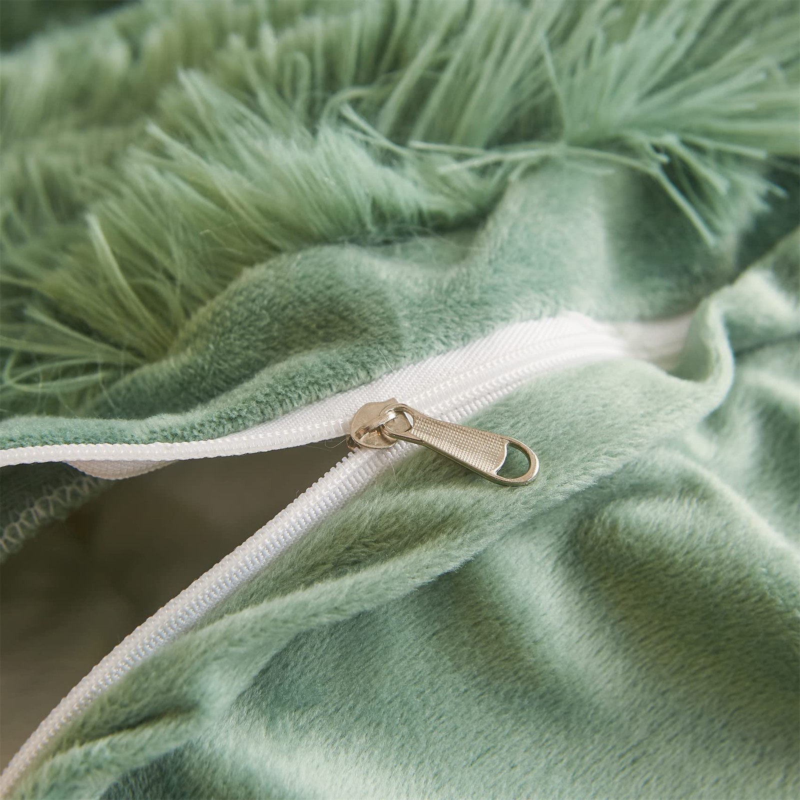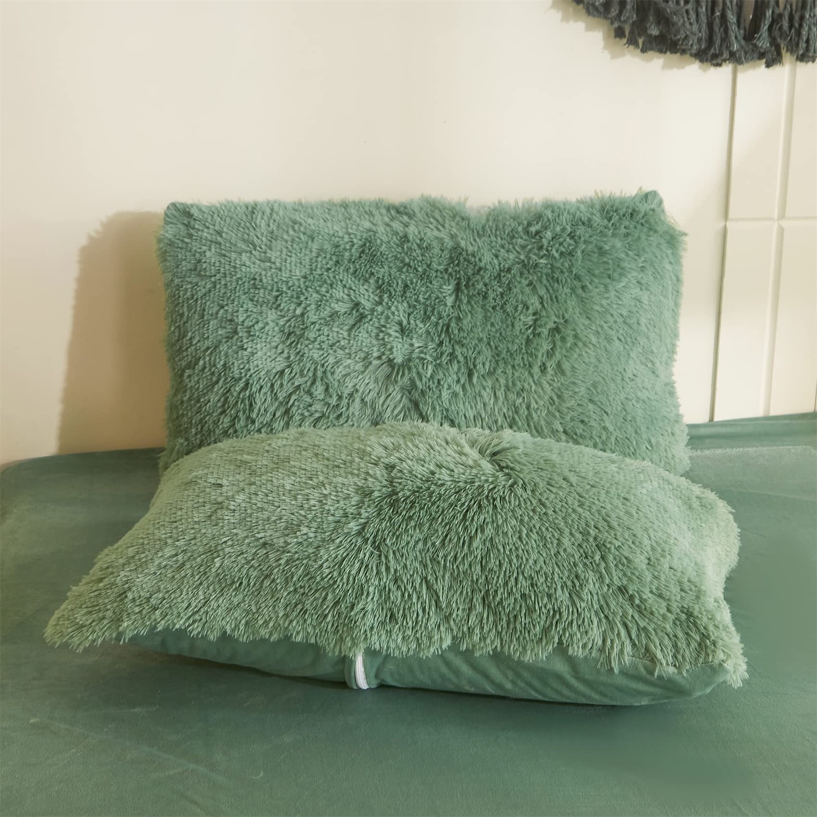 как выглядит Shaggy Duvet Cover 5 Set, Fluffy Faux Fur Green Comforter Set Queen - Plush U... фото