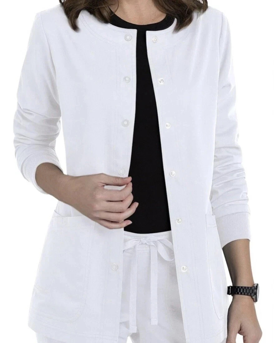 как выглядит GREYS ANANTOMY SIGNATURE WOMEN SCRUB JACKET IN WHITE IN ALL SIZES 2407 NWT фото