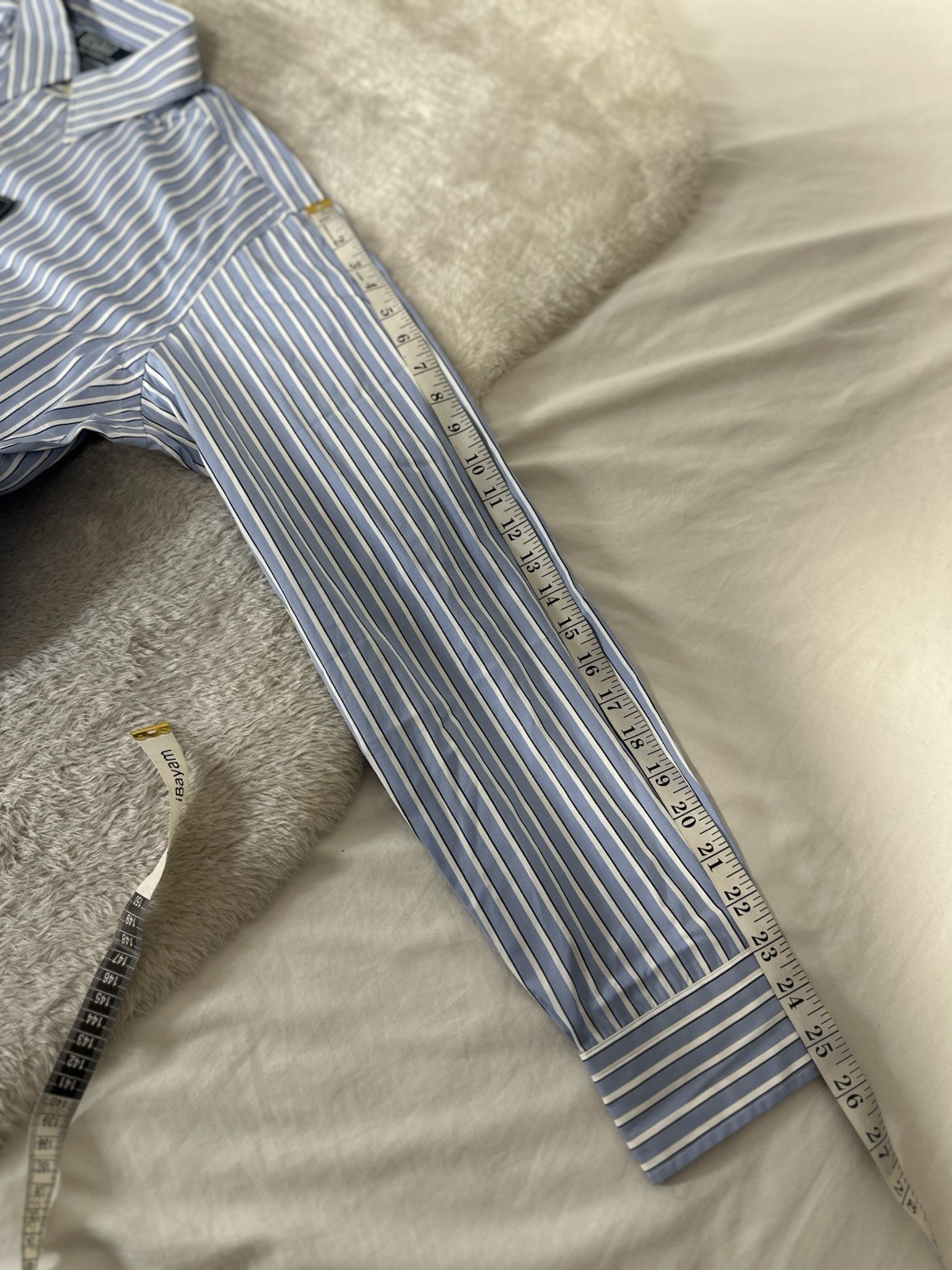 как выглядит New Polo Ralph Lauren Andrew Classic Fit Mens Blue White Shirt Size 16 34/35 NWT фото