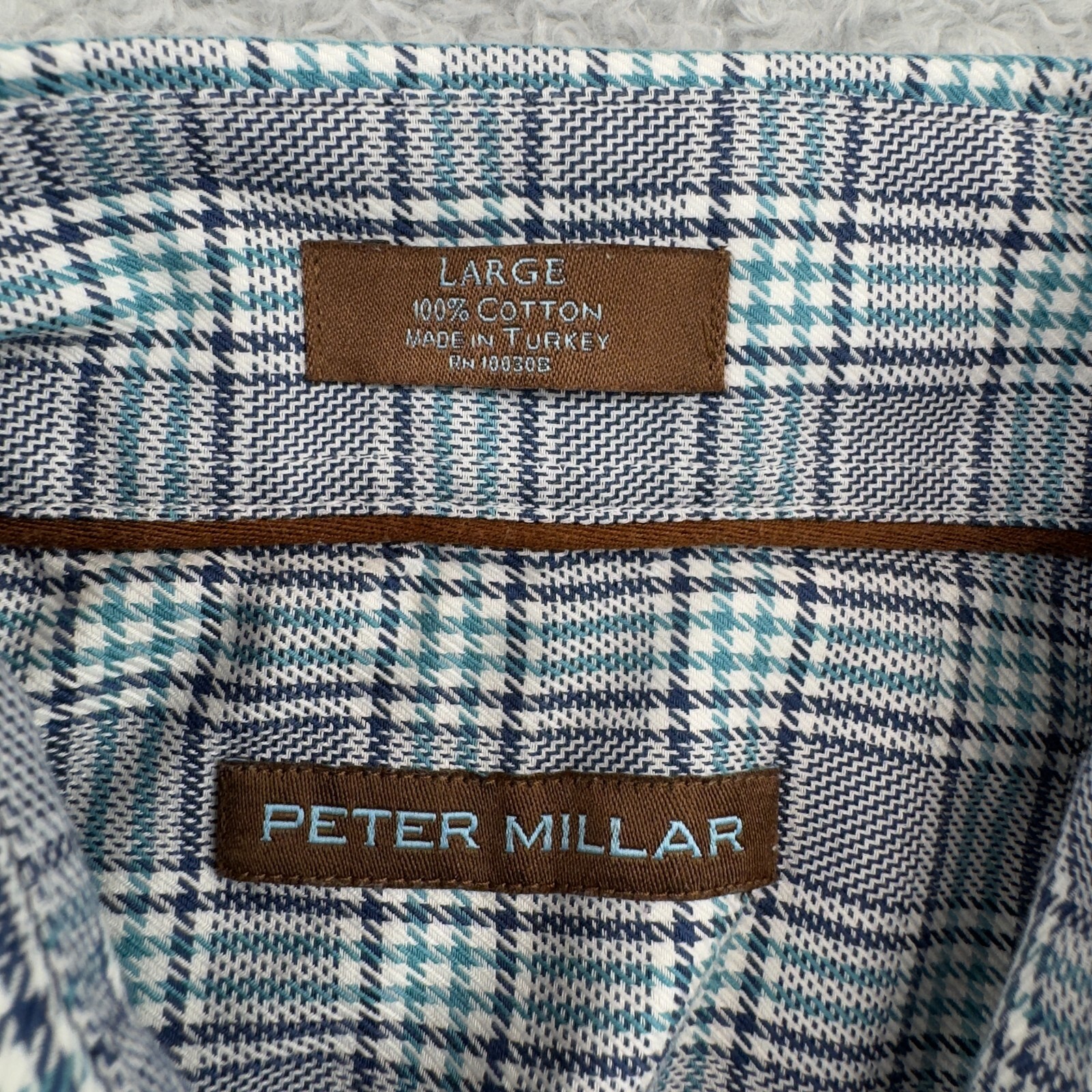Peter Millar Men s Shirt L Blue Plaid Long Sleeve Button-Up Casual Dress Shirt
