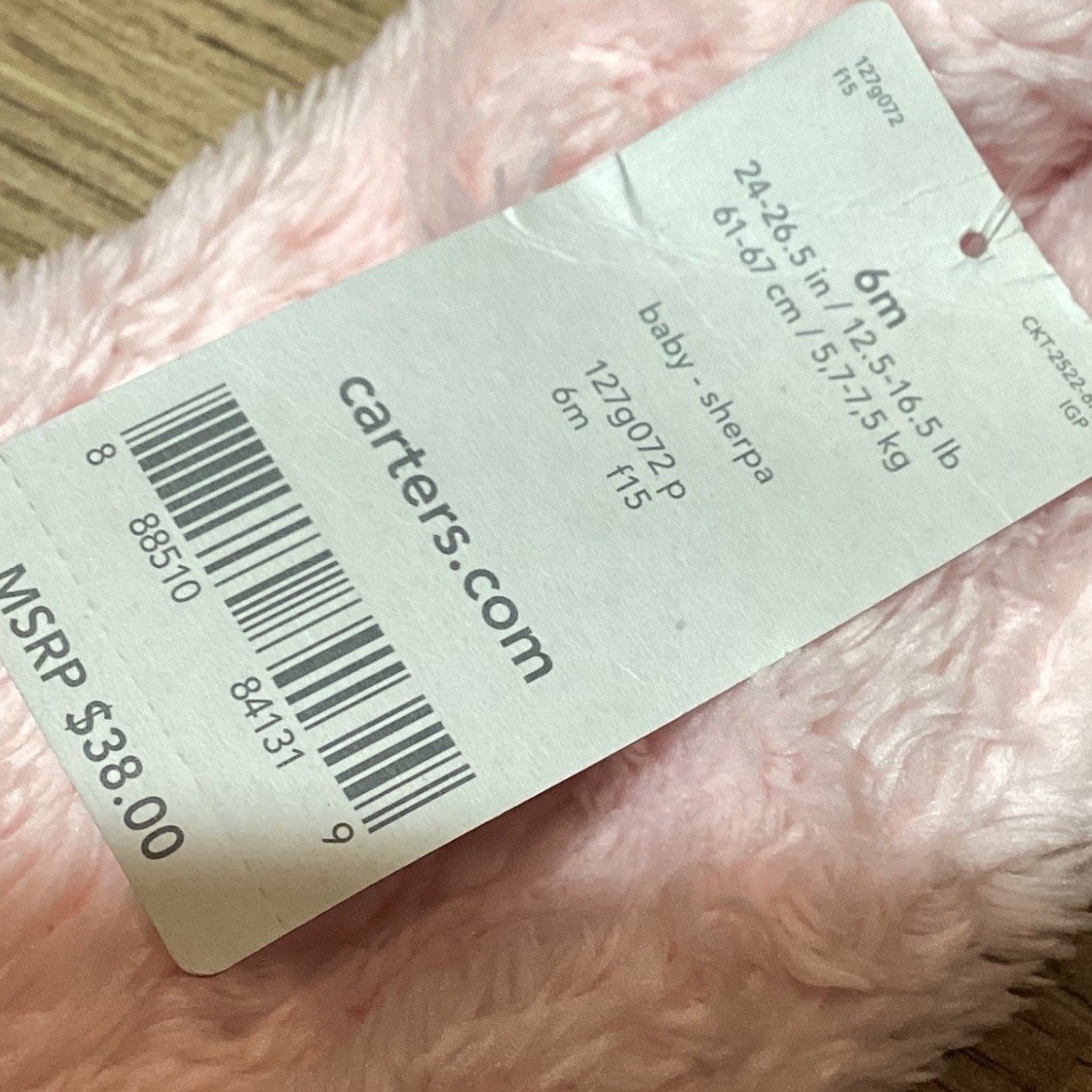 как выглядит Carters Baby Girl Pink Fuzzy Hooded Footed Pajamas Sleepsuit 6 Months фото