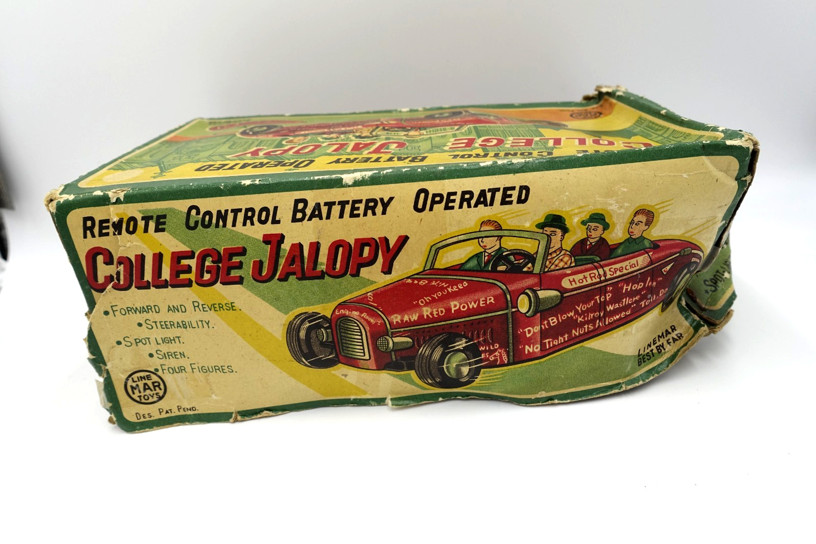 Vintage Marx Line Mar Tin College Jalopy Remote Control Car w/ Box WORKS READ