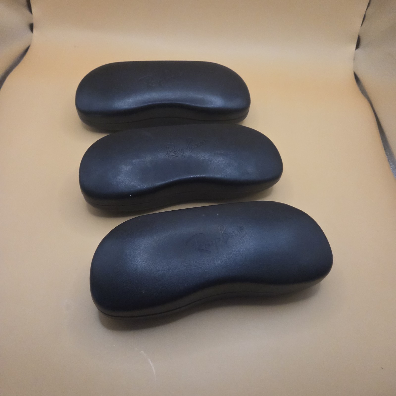 как выглядит Lot 3 Ray-Ban Eyeglass Sunglass Cases Black Hard Leather CASE ONLY Travel фото