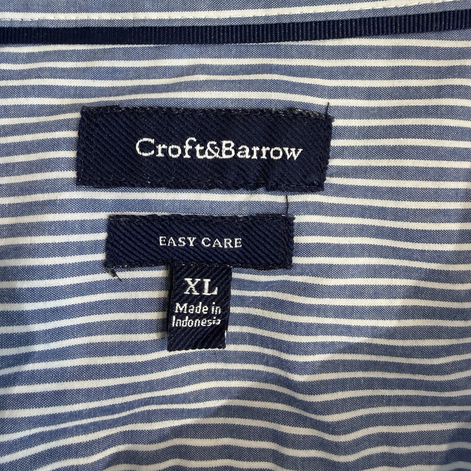 Croft Barrow Men's Easy Care Dress Shirt Blue White Striped Classic Fit XL