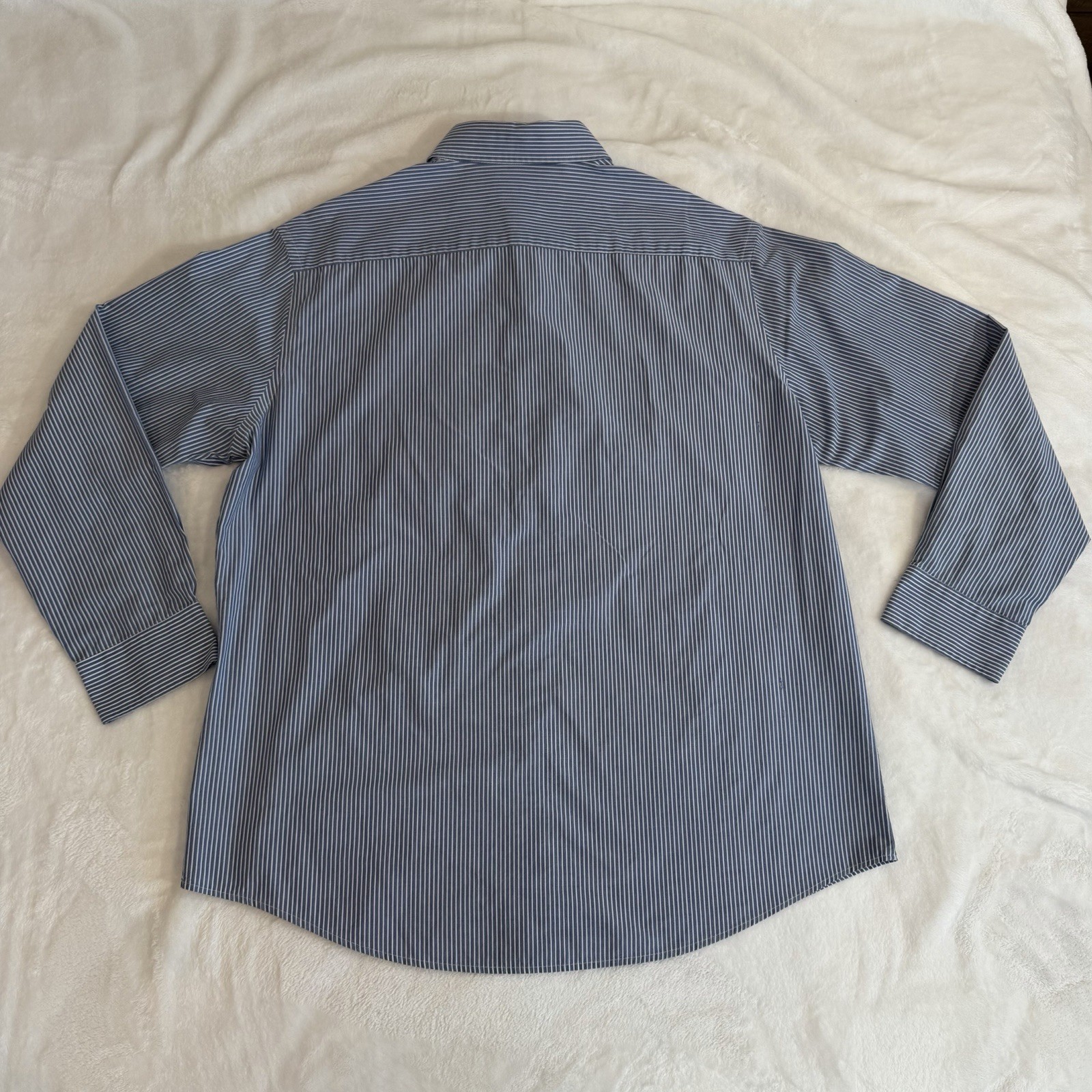 как выглядит Croft Barrow Mens Easy Care Dress Shirt Blue White Striped Classic Fit XL фото