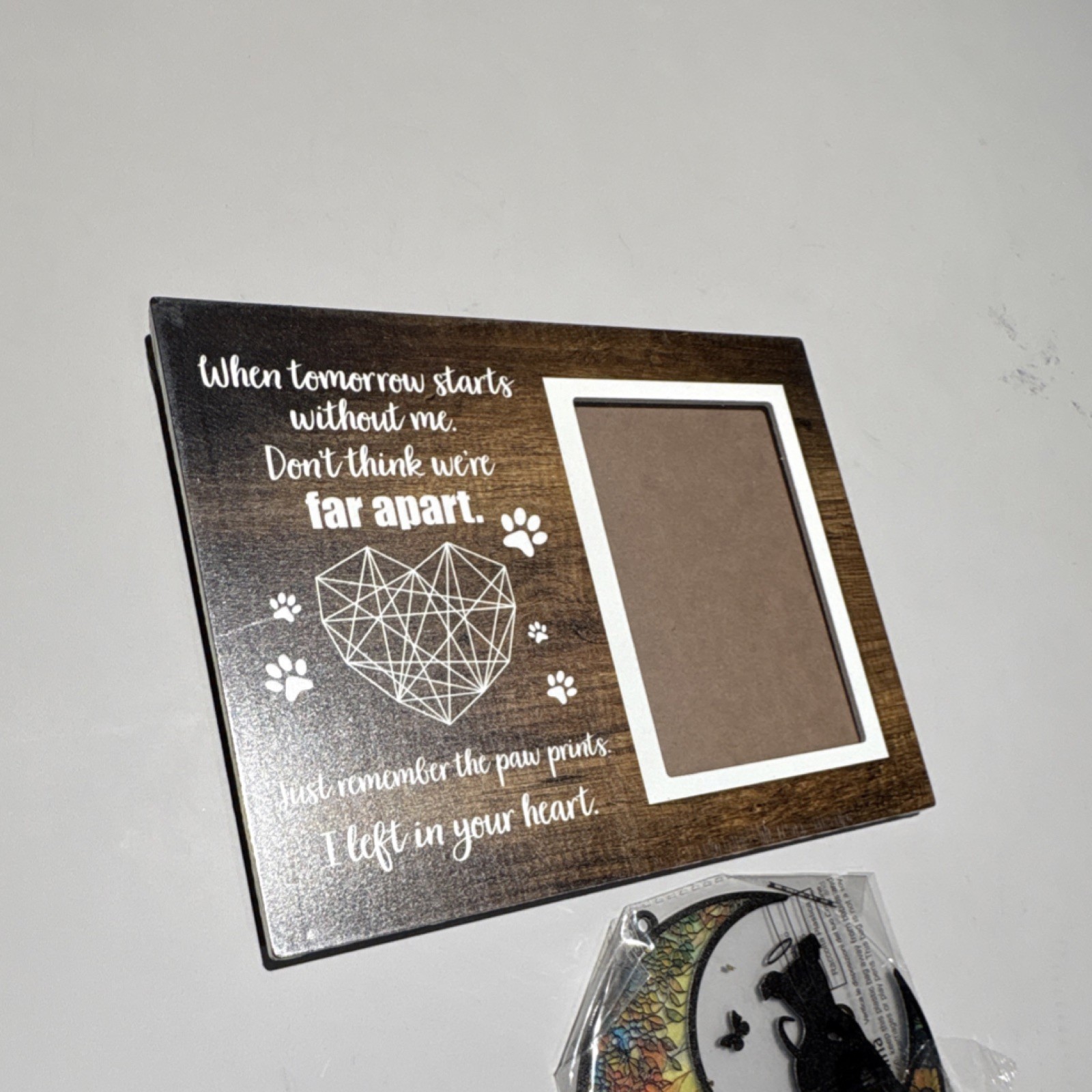 Brown Wood Pet Memorial Photo Frame Engraved Heart Paw Prints Rectangle