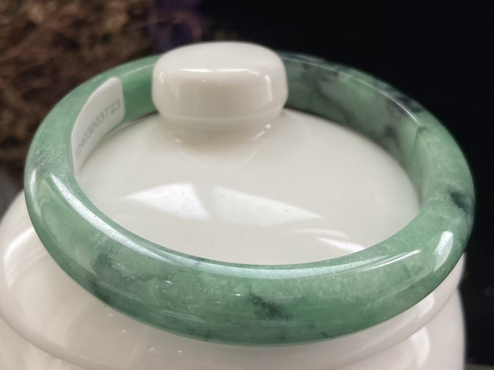 как выглядит 56mm Certified Natural Grade AAA Ice Green Burmese Jade jadeite bracelet3723 фото