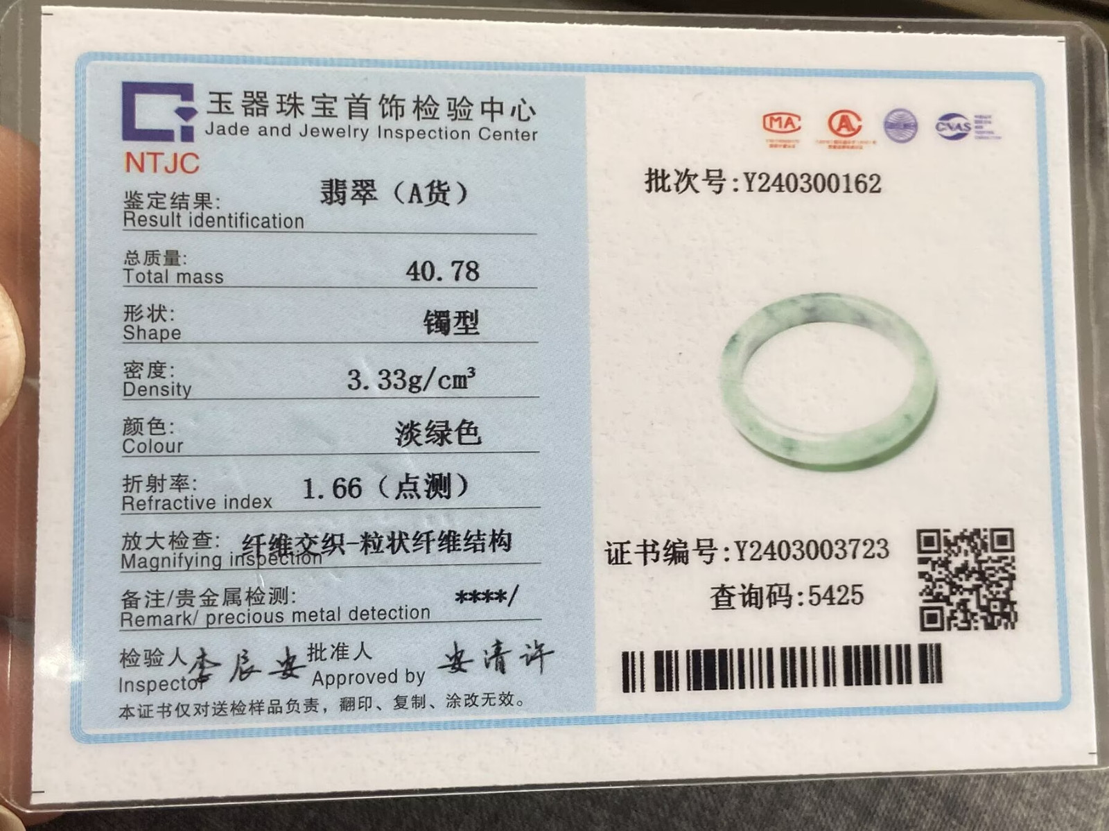 56mm Certified Natural Grade AAA Ice Green Burmese Jade jadeite bracelet3723