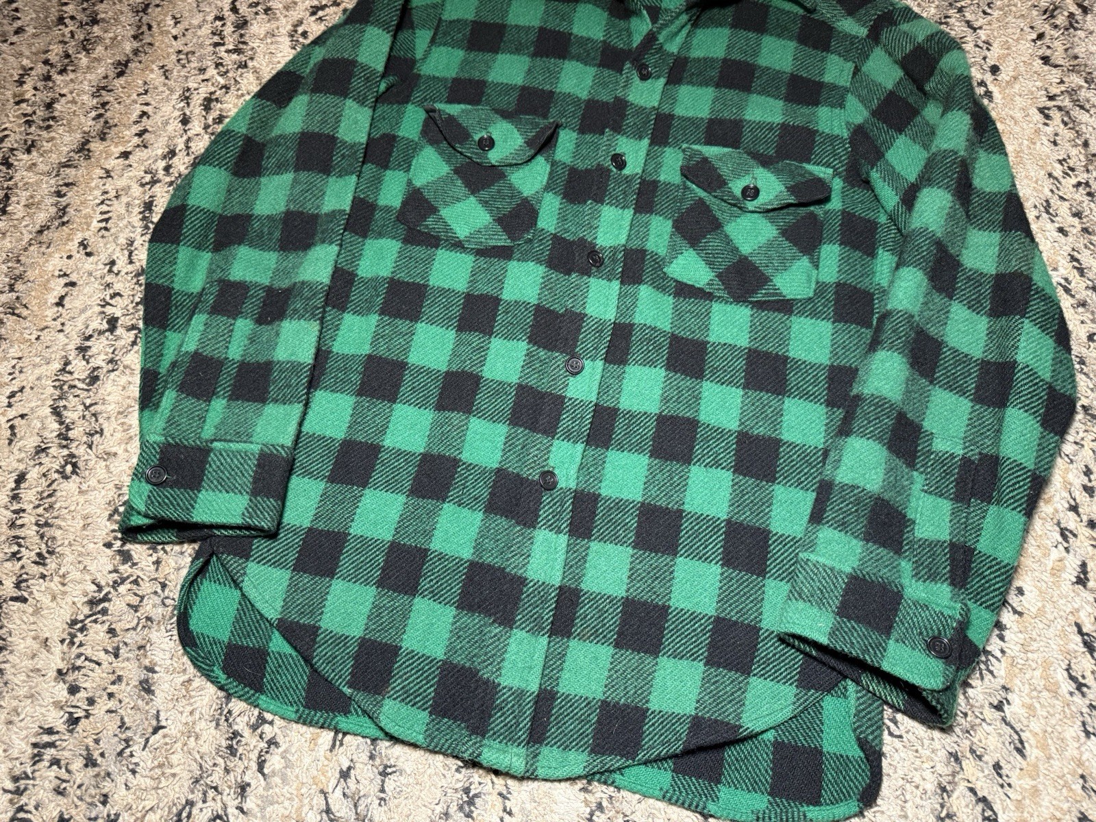 Vtg 60s 70s Woolrich Green Plaid Wool L Lumberjack Shacket Men s Cabin Core