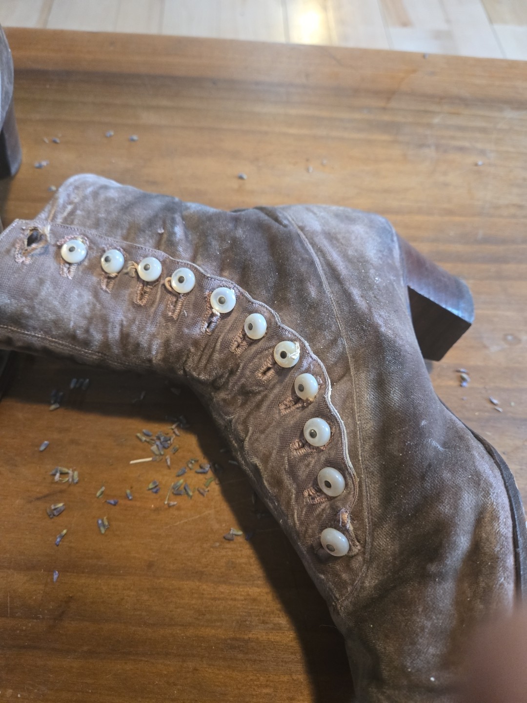 как выглядит Antique Edwardian c. 1900s Womens Velvet and Leather Button Up Ankle Boots фото
