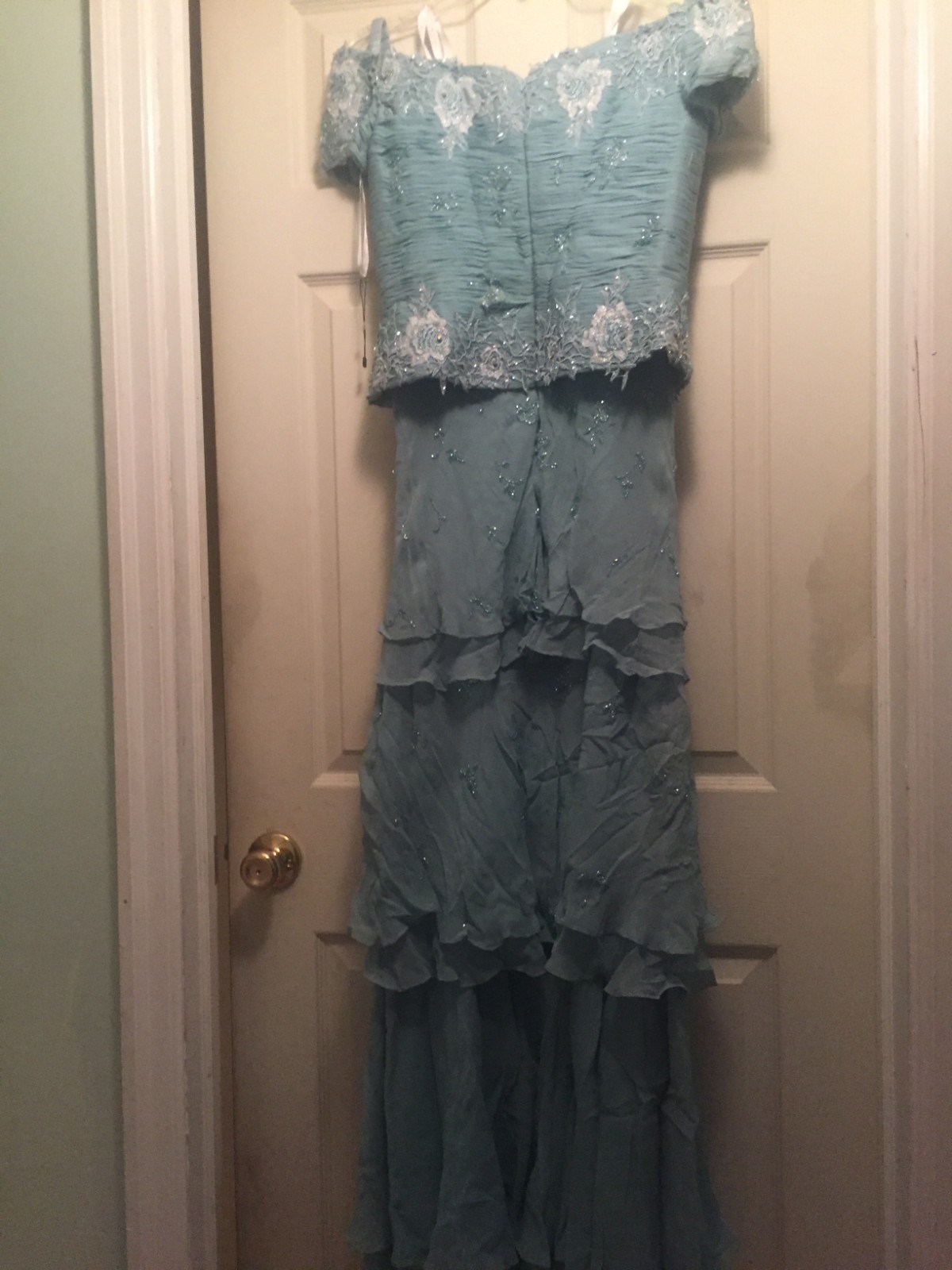 как выглядит Montage by Mon Cheri Womens Rhinestone/Beaded Powder Blue Gown Size 8 фото